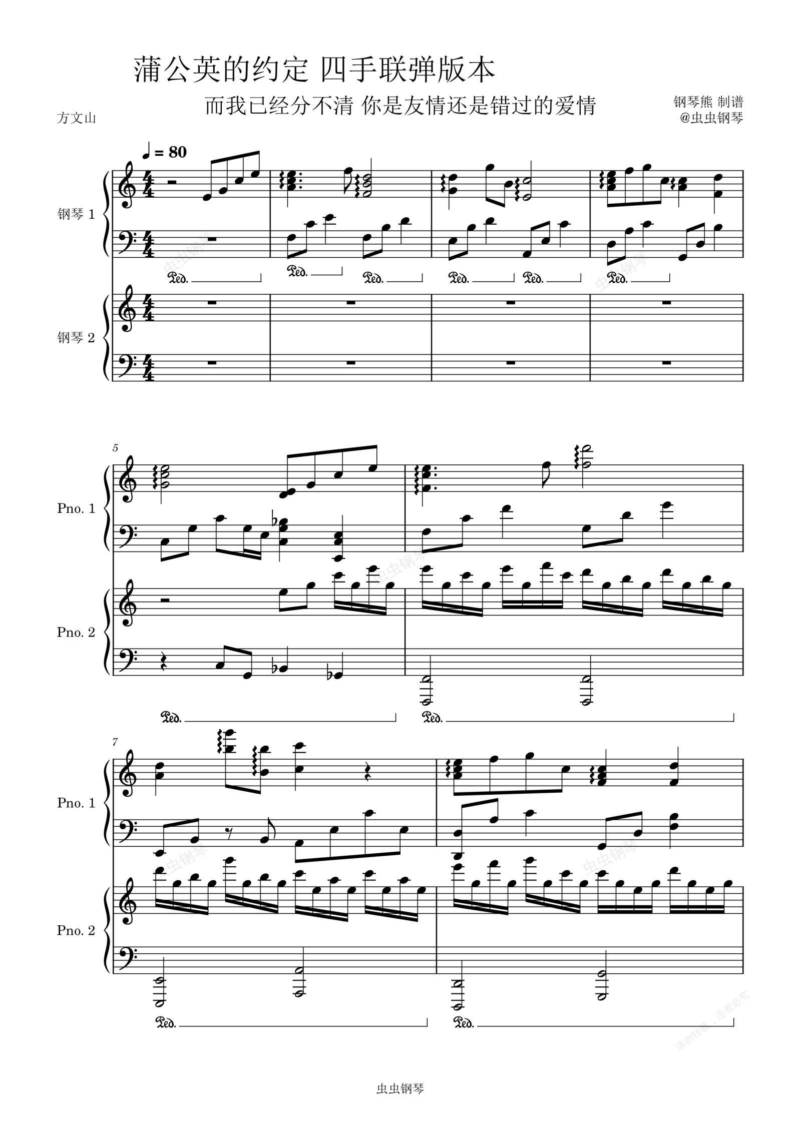 钢琴谱:蒲公英的约定(四手联弹版)
