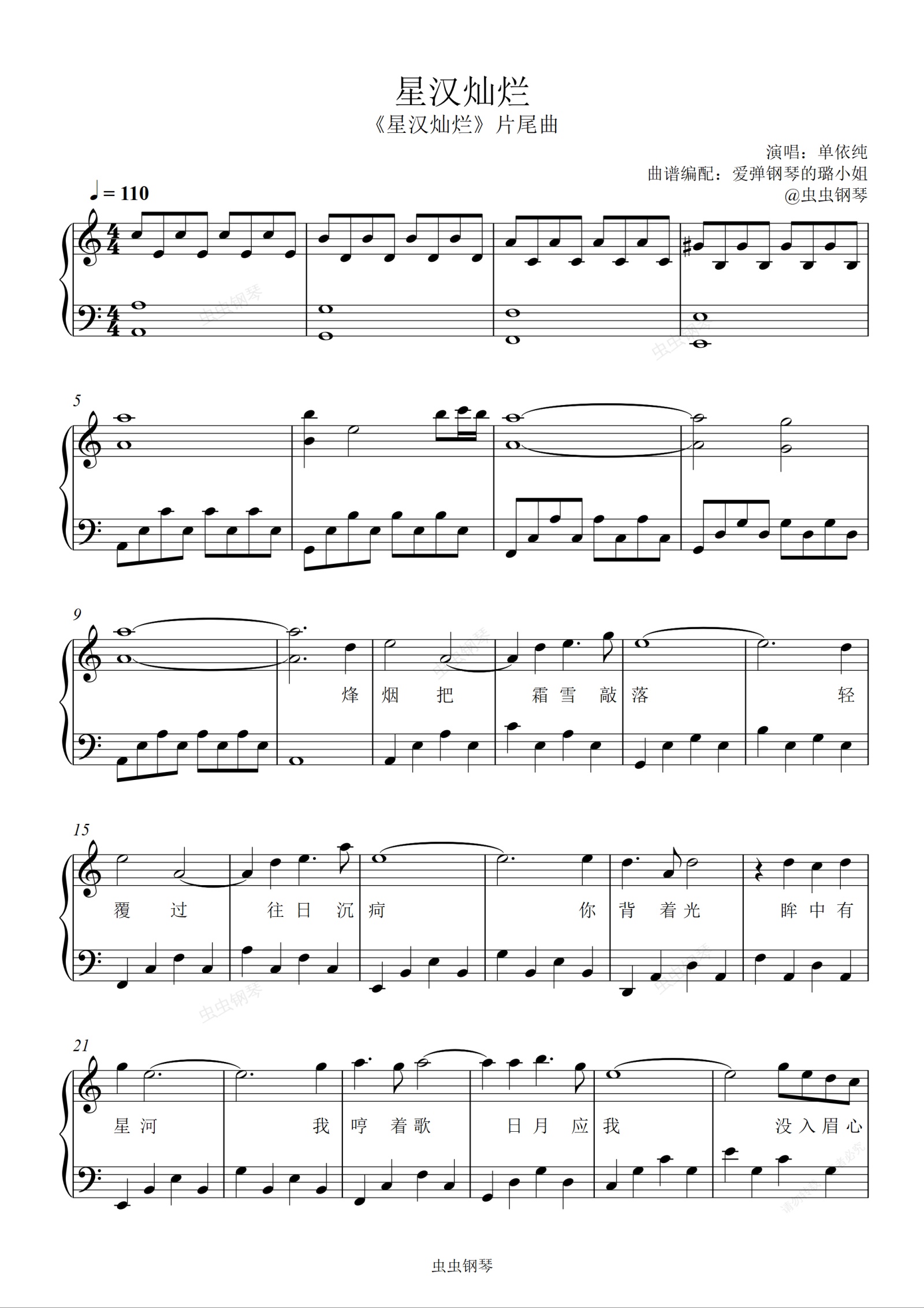 钢琴谱:星汉灿烂《星汉灿烂》主题曲 - C调简化完整版(适合初学) - 附歌词