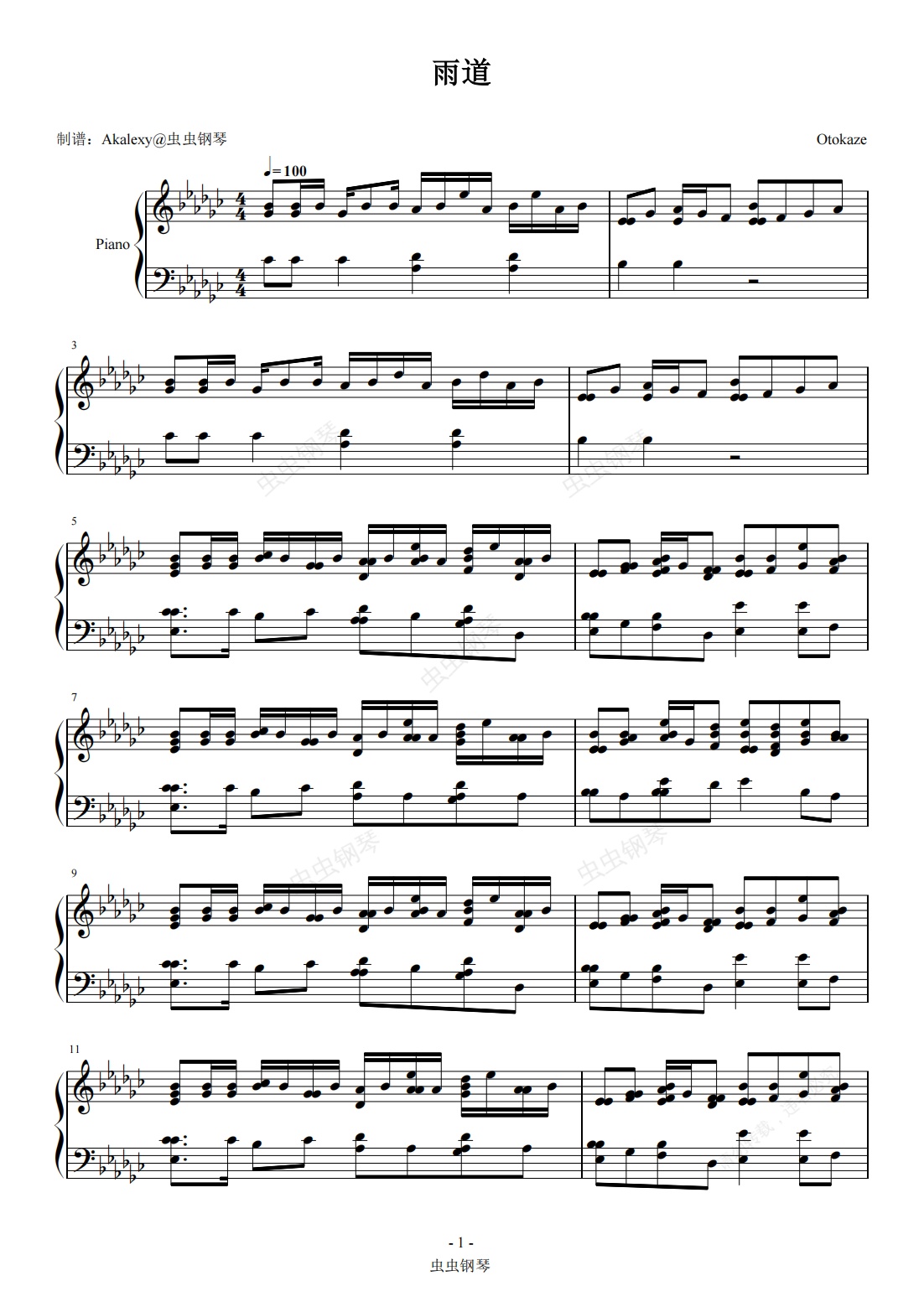 钢琴谱:Otokaze《雨道》