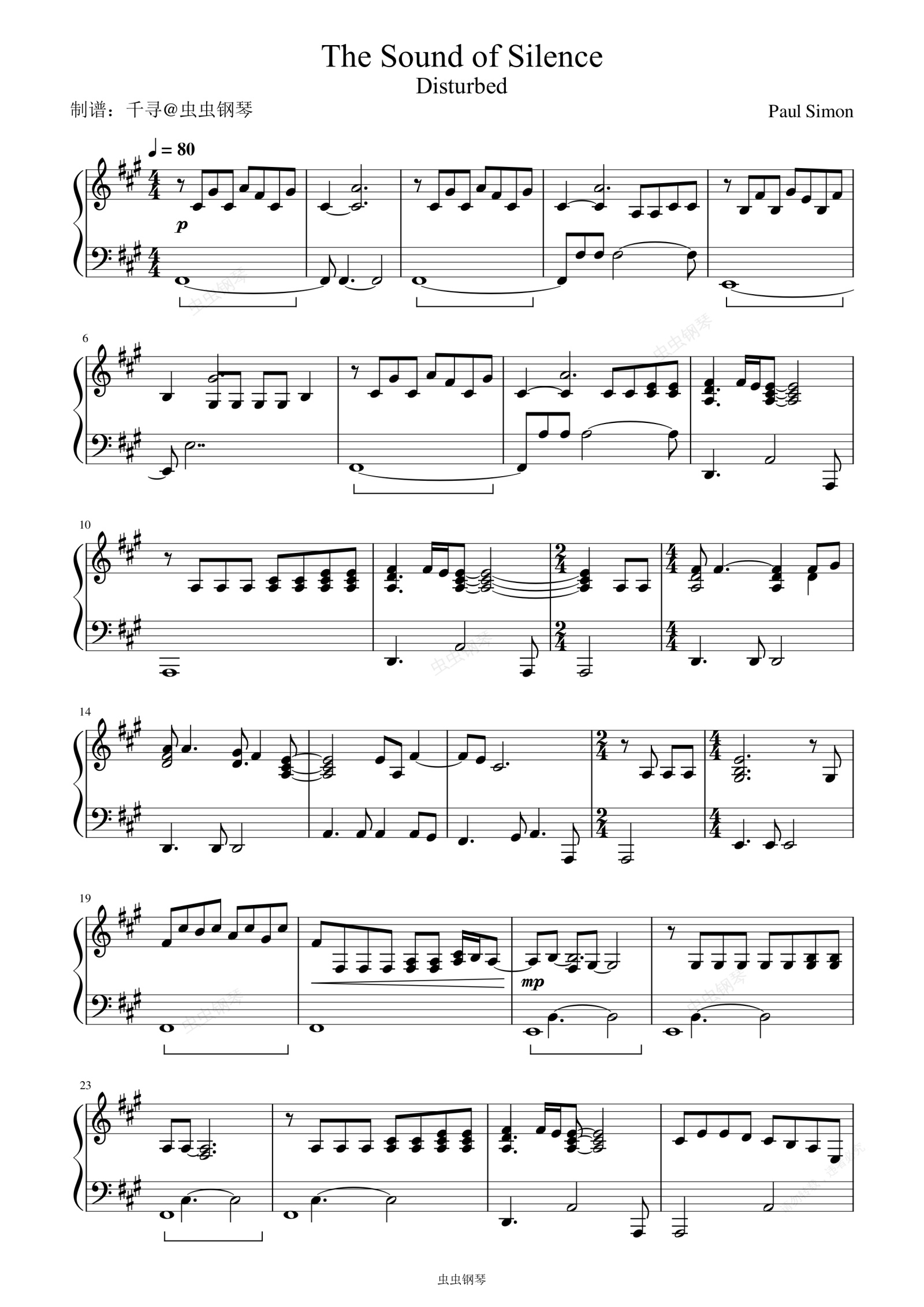 钢琴谱:The Sound of Silence - Disturbed (骚动乐团)