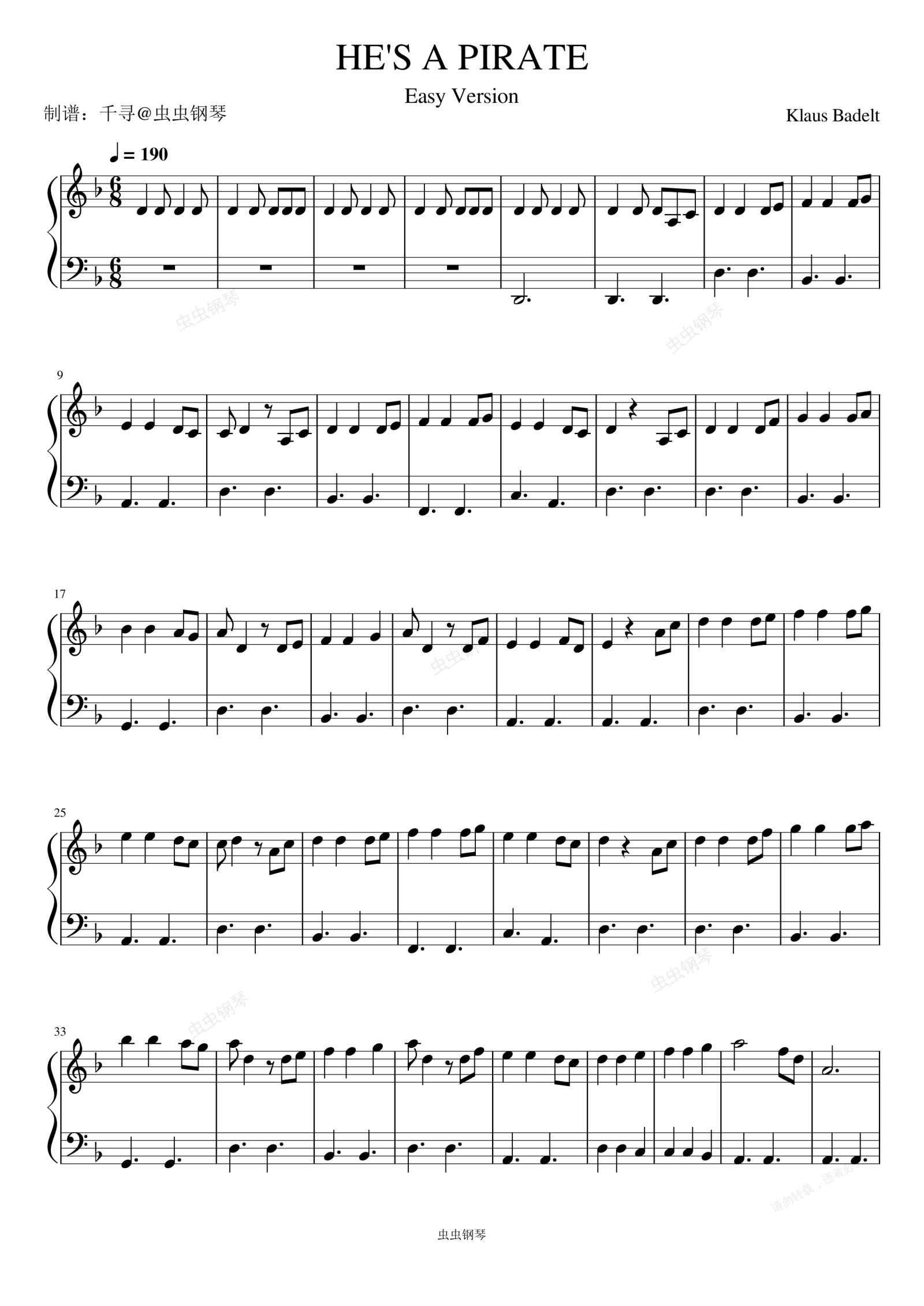 钢琴谱:加勒比海盗/He's A Pirate - 简易版