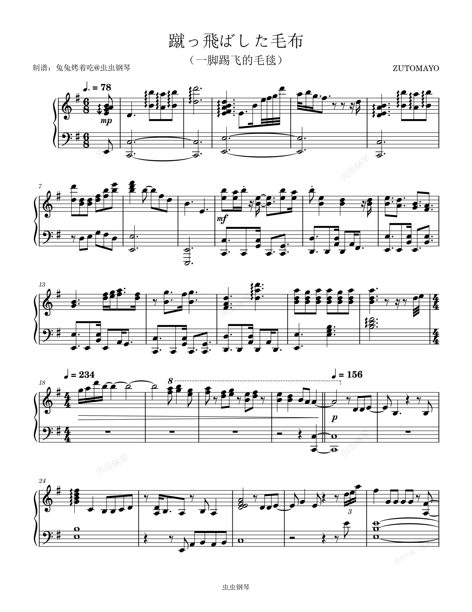 钢琴谱:《蹴っ飛ばした毛布》(一脚踢飞的毛毯)真夜中 独奏