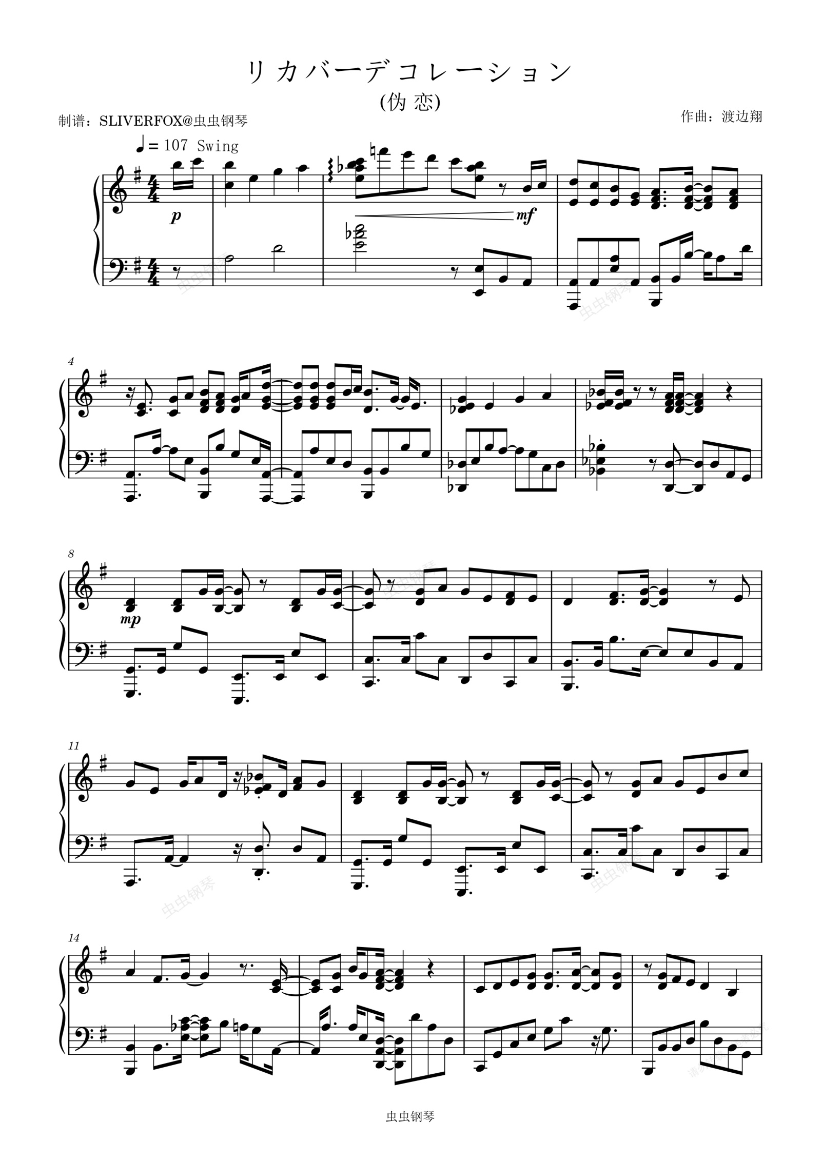 钢琴谱:《リカバーデコレーション》(伪恋)片尾曲 G调独奏