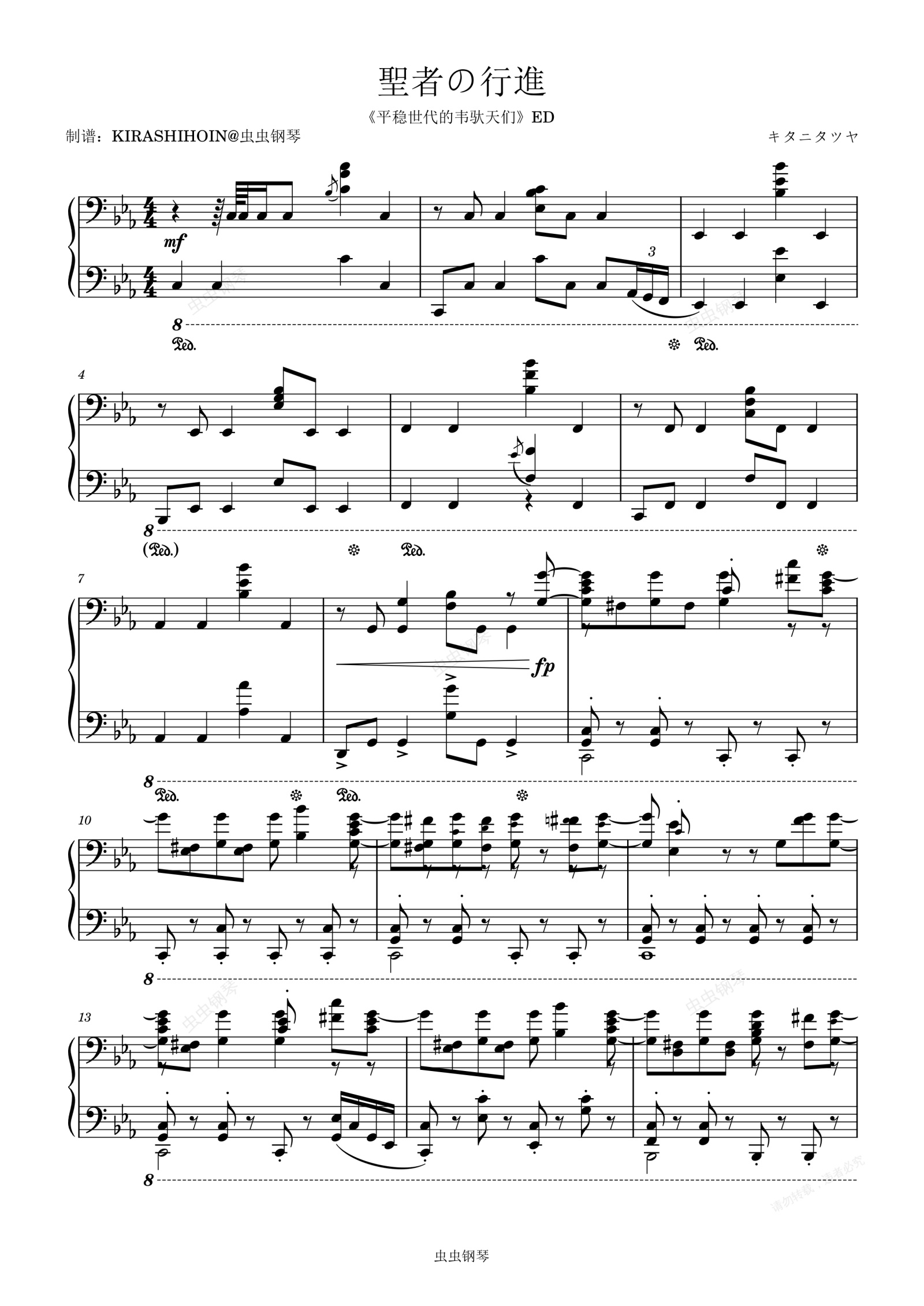 钢琴谱:聖者の行進(《平稳世代的韦驮天们》ED/片尾曲)- キタニタツヤ
