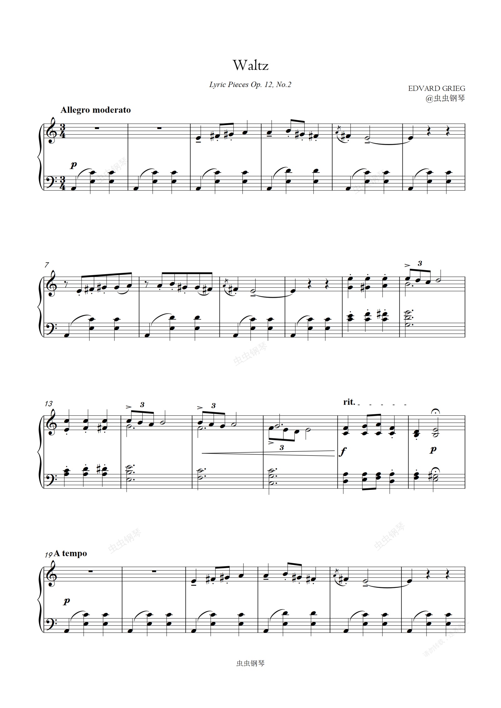 钢琴谱:圆舞曲-格里格抒情小品 op.12 no.2