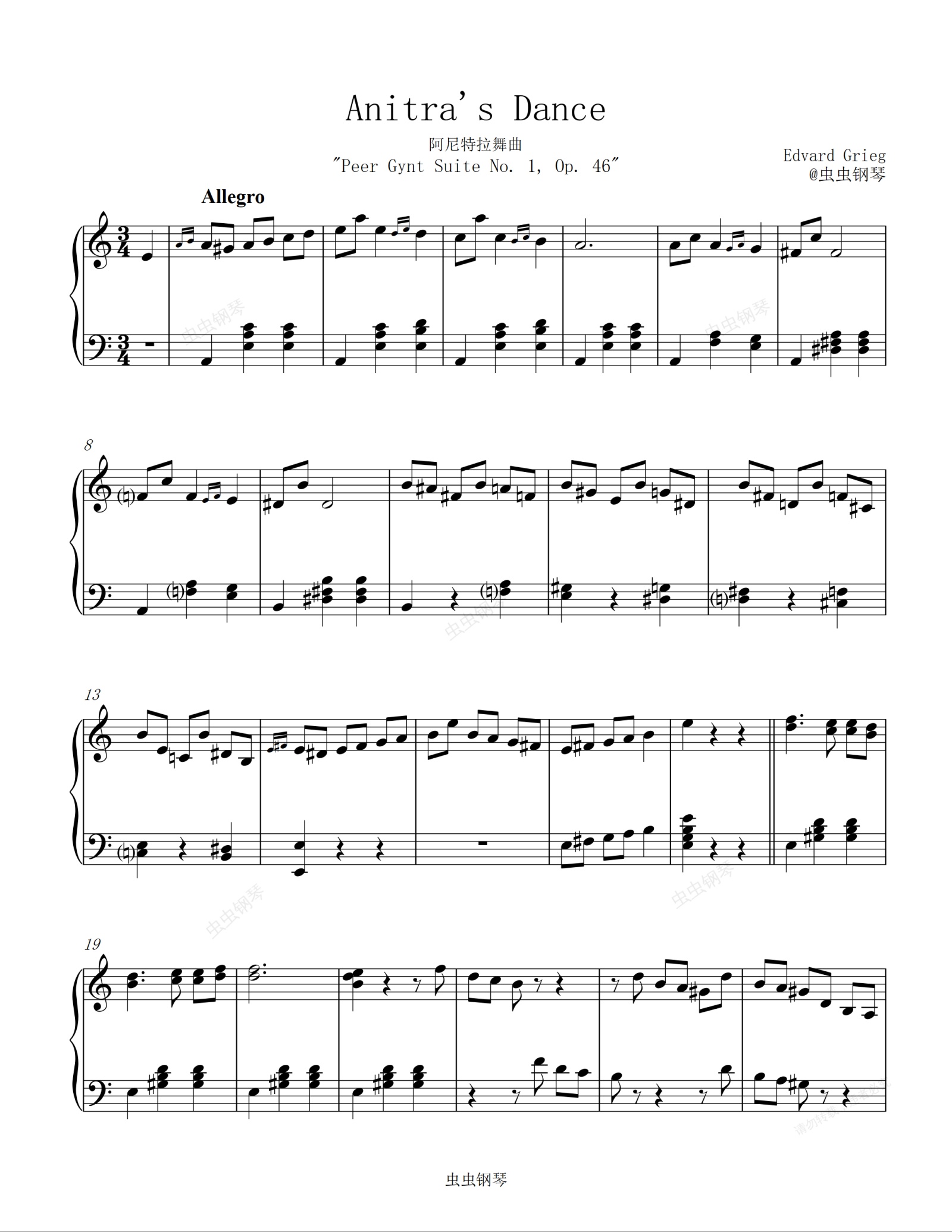 钢琴谱:格里格 阿尼特拉舞曲 Anitra’s Dance