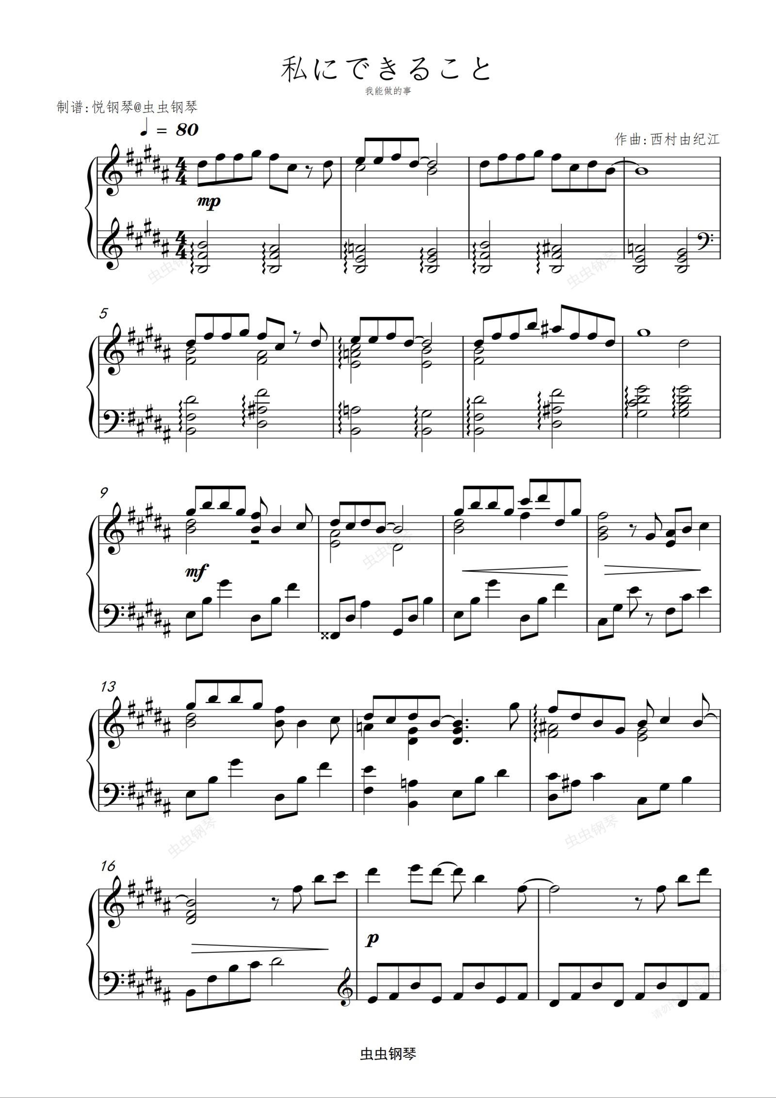钢琴谱:私にできること(我能做的事)西村由紀江