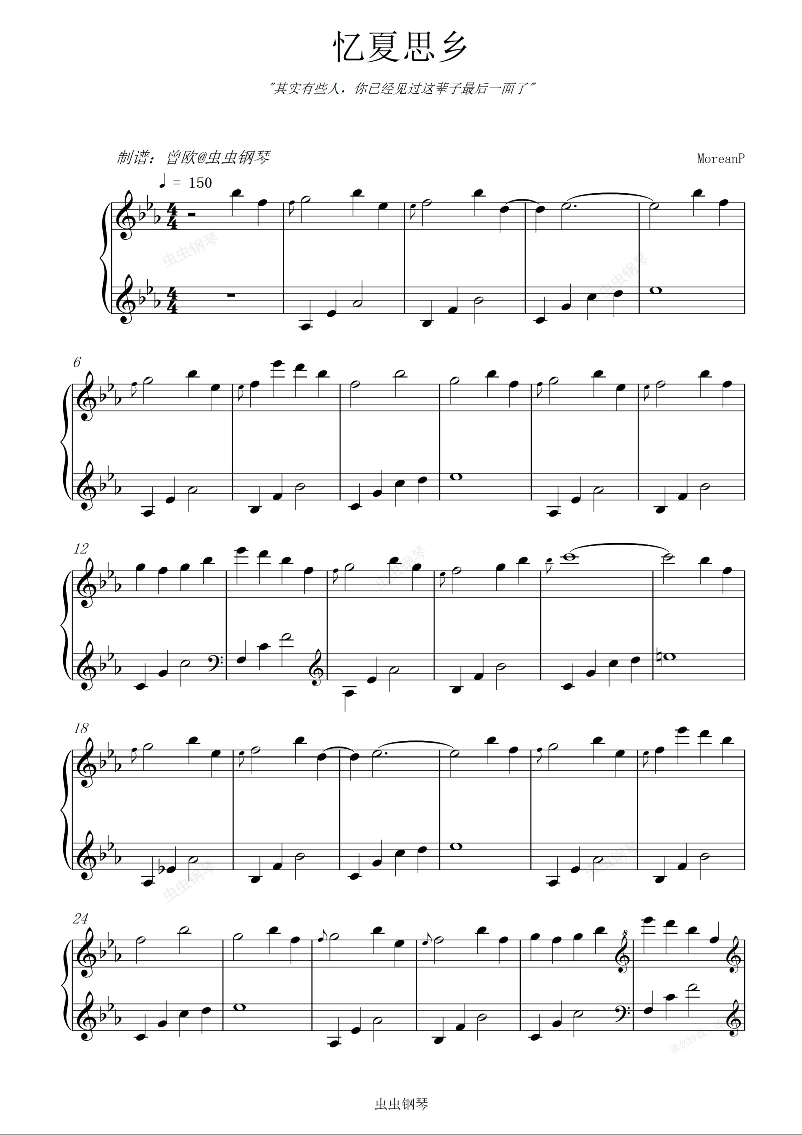 钢琴谱:忆夏思乡 - MoreanP【永逝的夏天与我永存的乡愁】