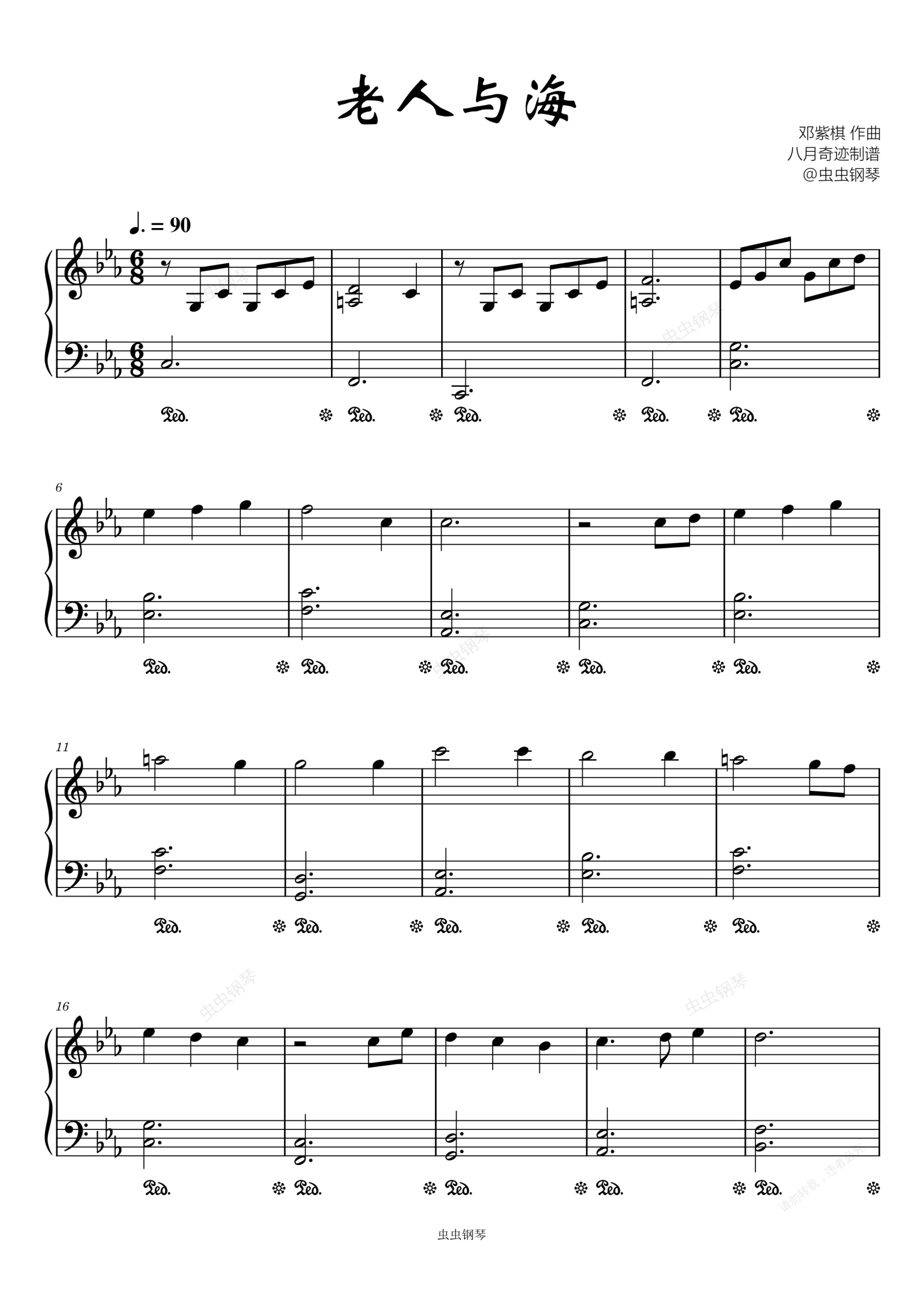 钢琴谱:邓紫棋 老人与海