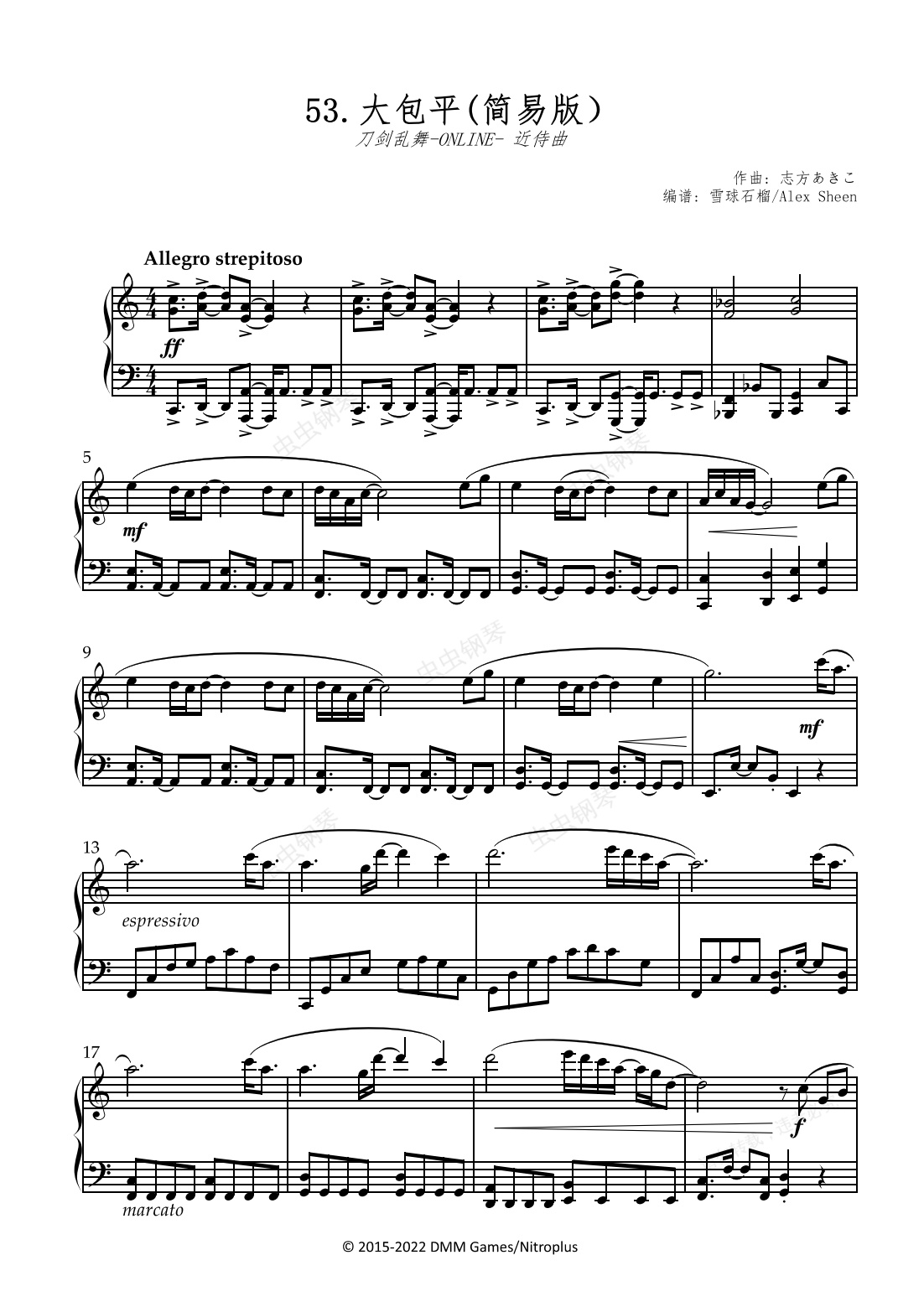 钢琴谱:大包平 近侍曲 【刀剑乱舞】(简易版)