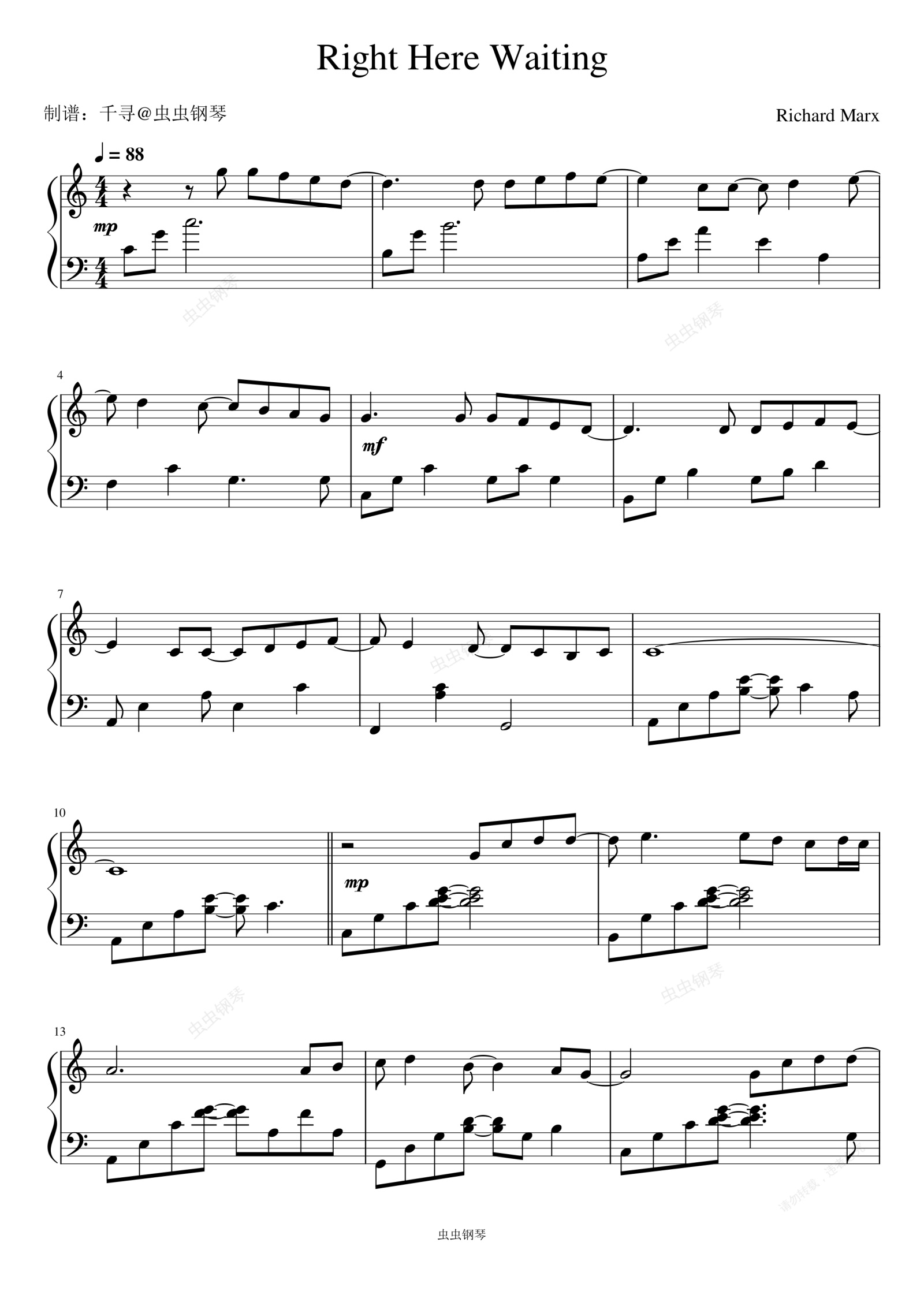 钢琴谱:Right Here Waiting - Richard Marx (理查德.马克斯)