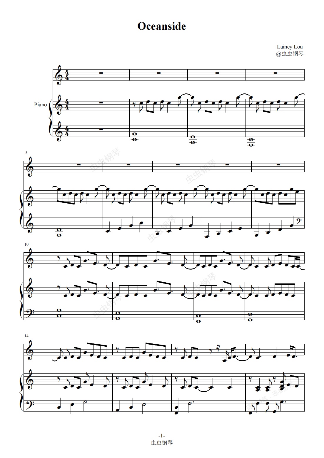 钢琴谱:Oceanside-Lainey Lou-钢琴伴奏谱