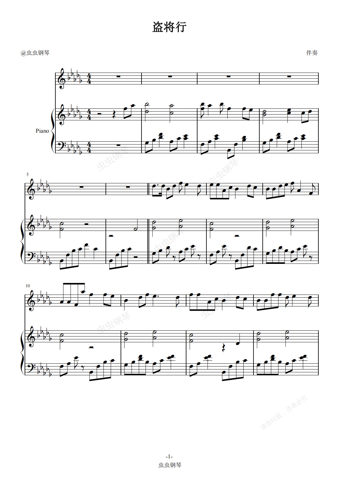 钢琴谱:《盗将行》-花粥-钢琴伴奏谱 进阶