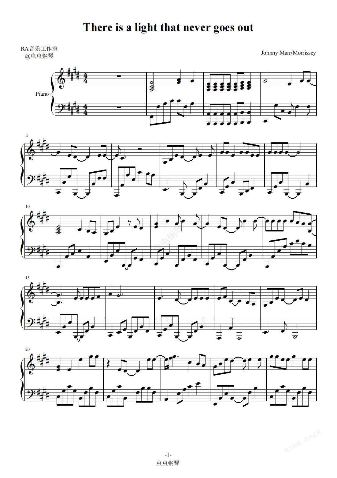钢琴谱:《There is a light that never goes out》-The Smiths-钢琴演奏谱