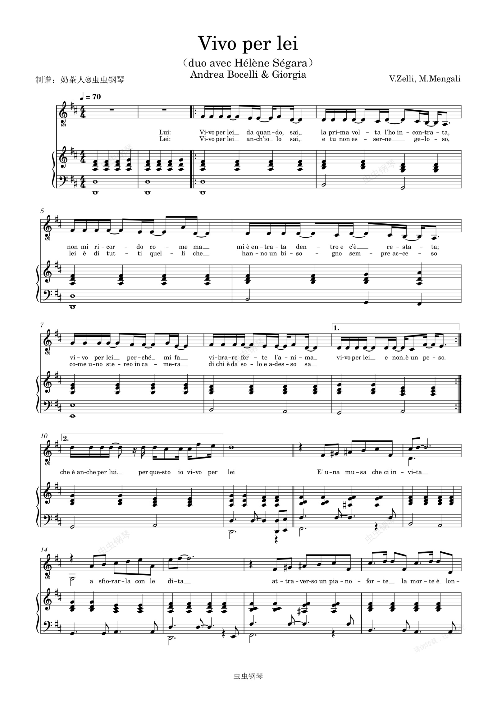 钢琴谱:《Vivo per lei》为她而活 弹唱歌词版(五国多版本小众音乐 )