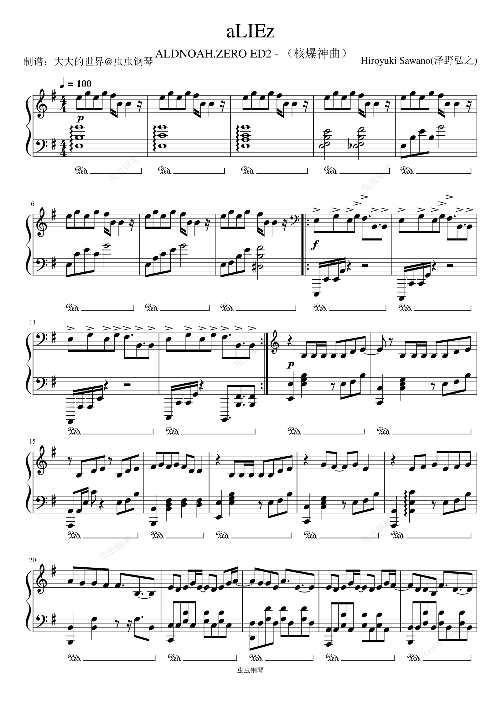 钢琴谱:aLIEz -  核爆神曲(泽野弘之)/mizuki (瑞葵)