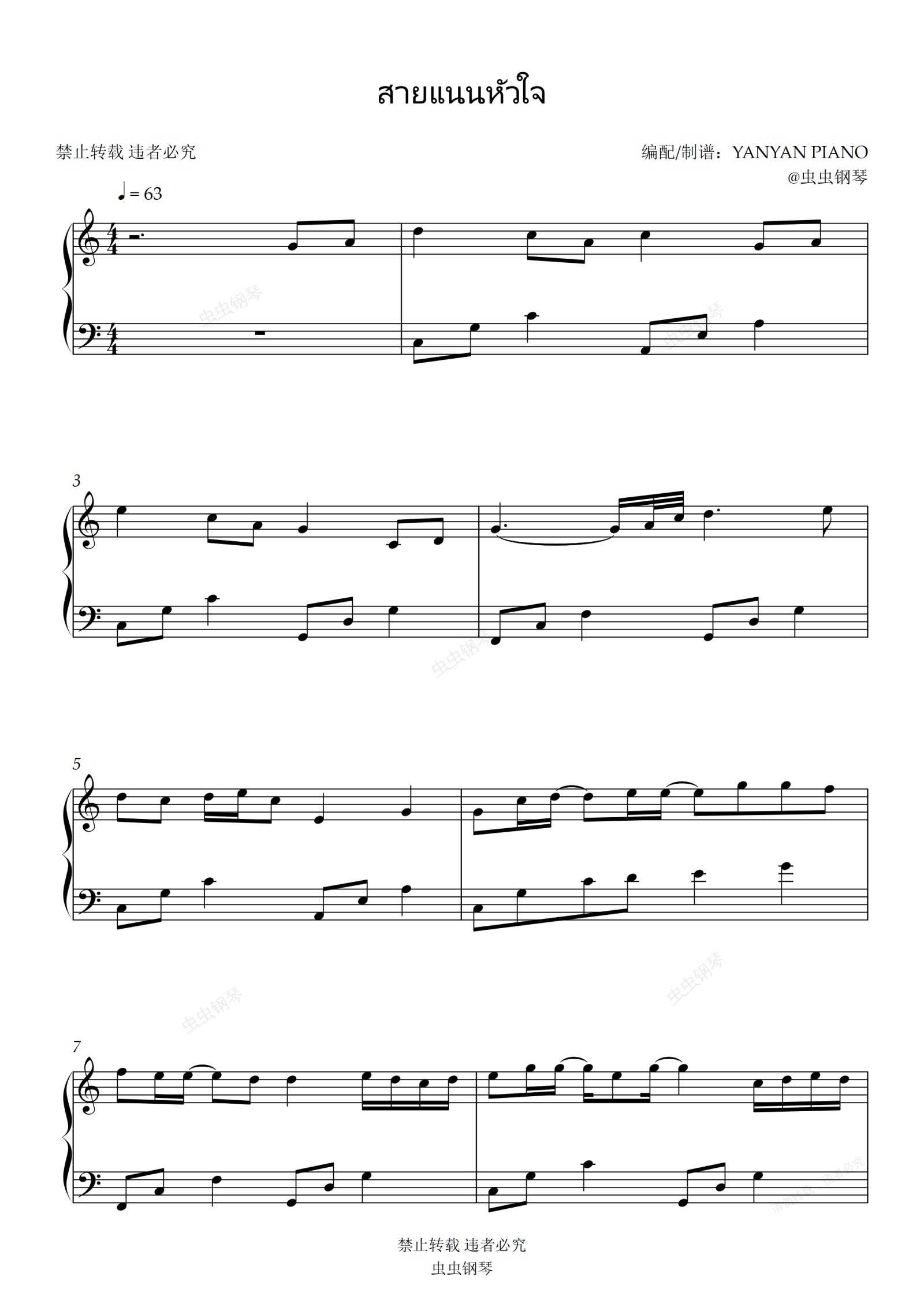 钢琴谱:好听易弹【สายแนนหัวใจ】曹博明/Thai Music【三面娜迦2】主题曲