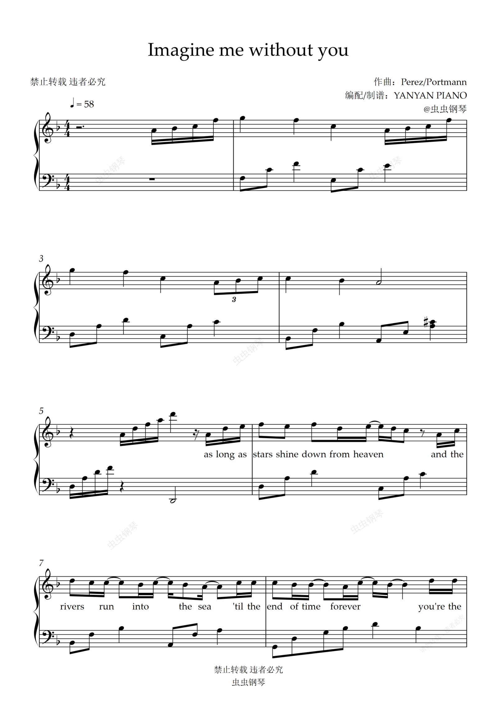 钢琴谱:好听易弹【Imagine me without you】Luis Fonsi
