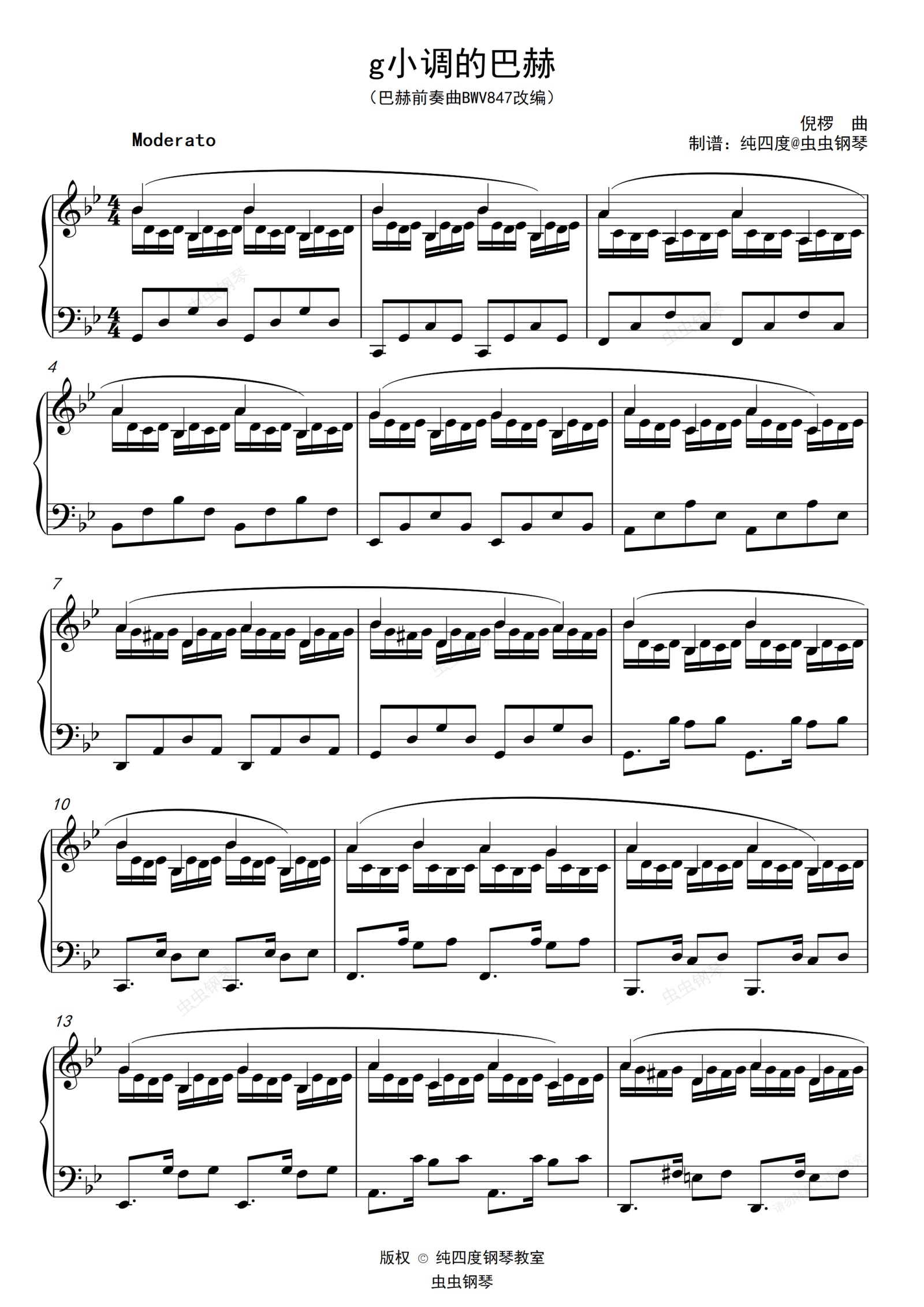 钢琴谱:g小调的巴赫(声部清晰编排)