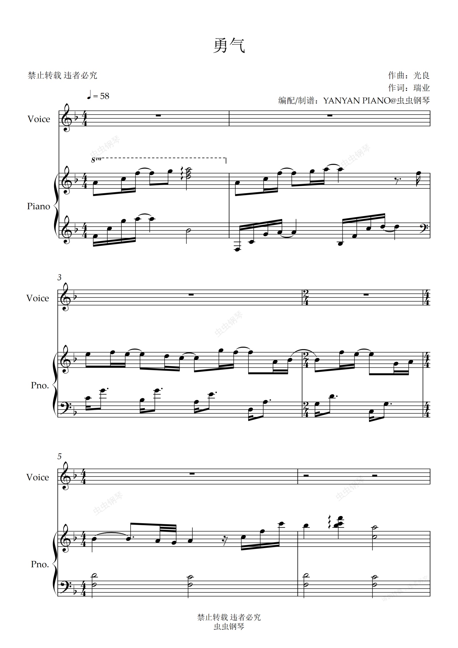 钢琴谱:钢琴弹唱【勇气】梁静茹【钢琴+人声试听】