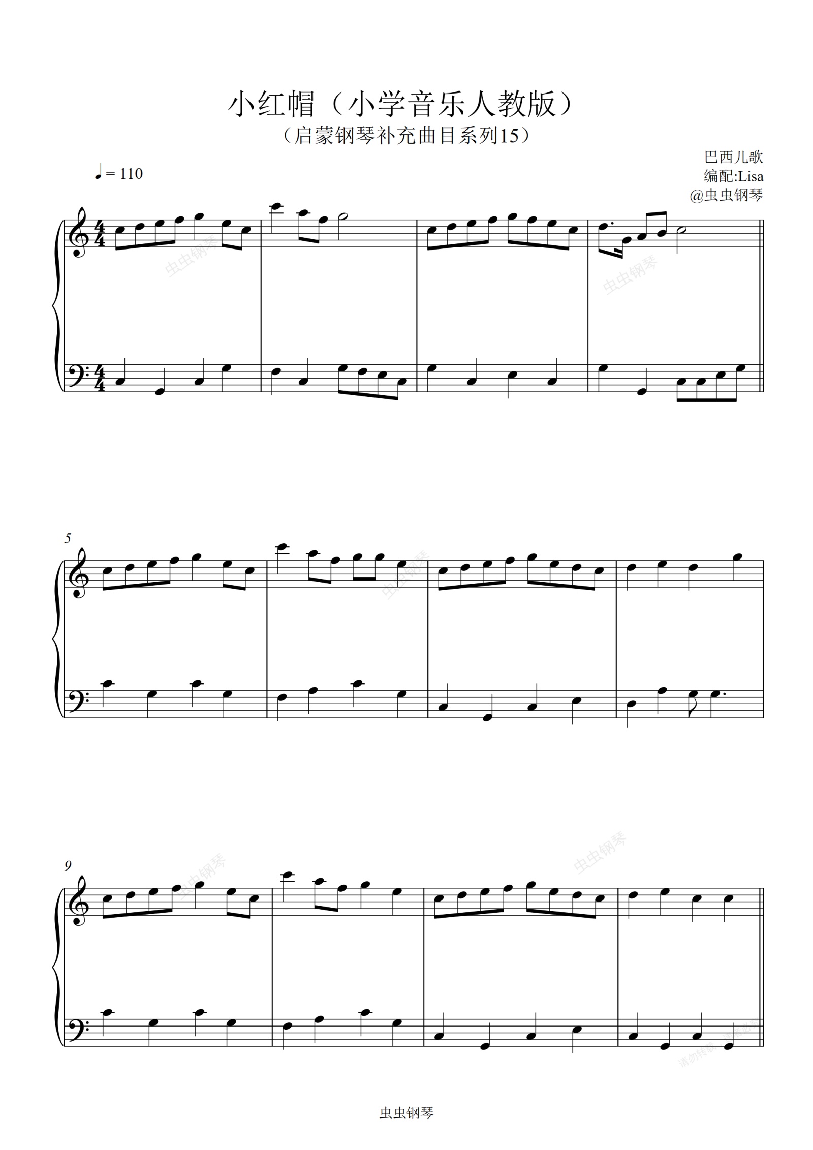 钢琴谱:小红帽(小学音乐人教版,小汤3水平)