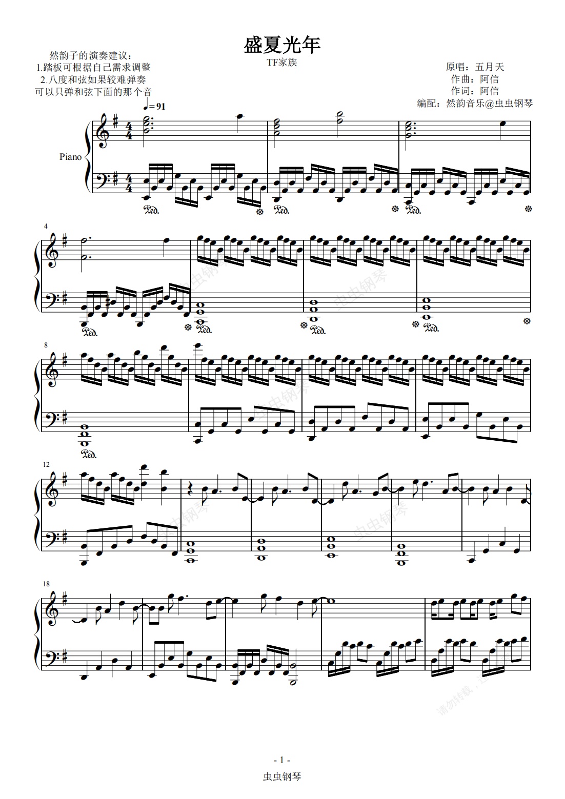 钢琴谱:【原调】盛夏光年-TF家族 高燃还原 然韵音乐编配