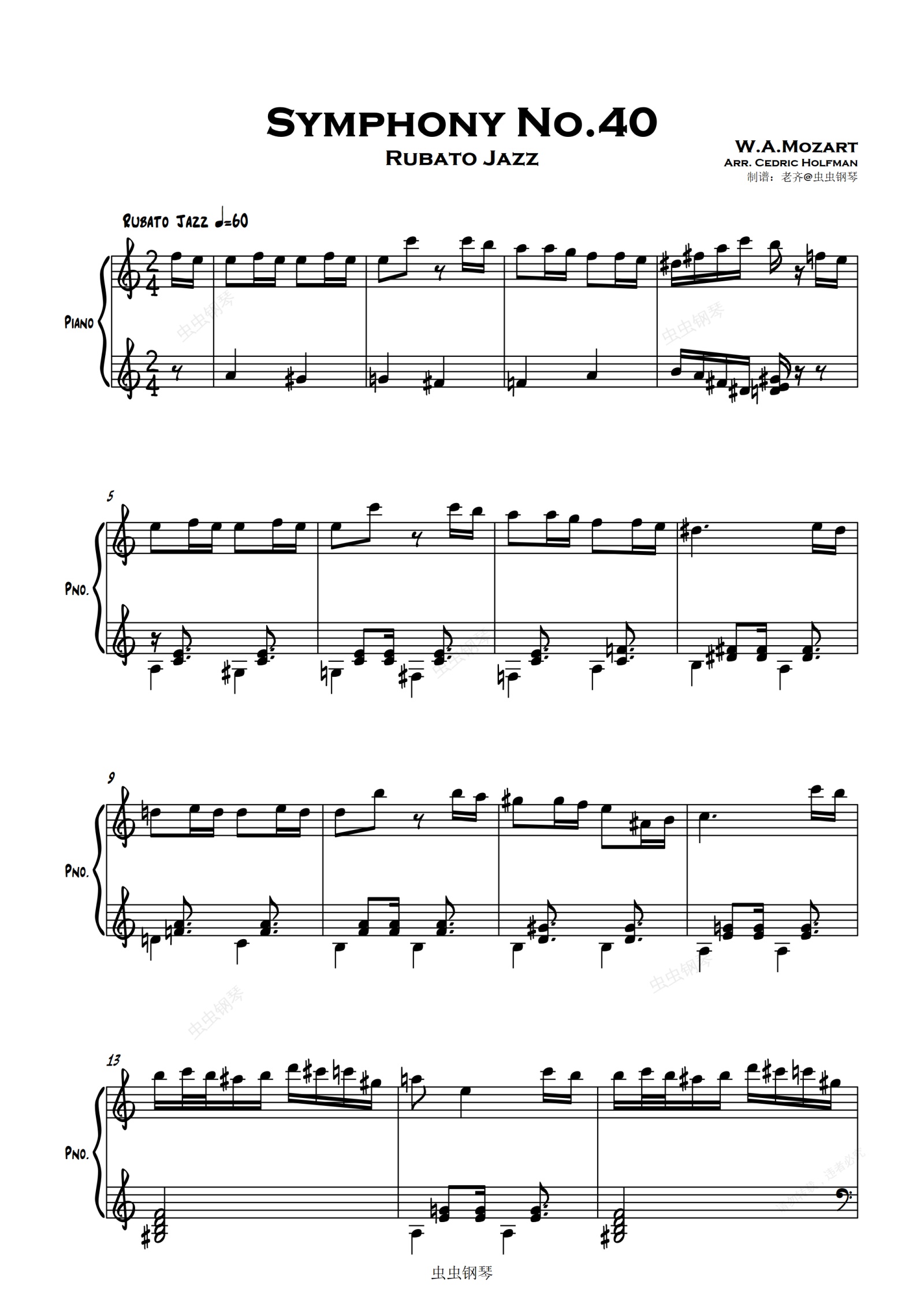钢琴谱:【慢爵士】莫扎特第四十交响曲