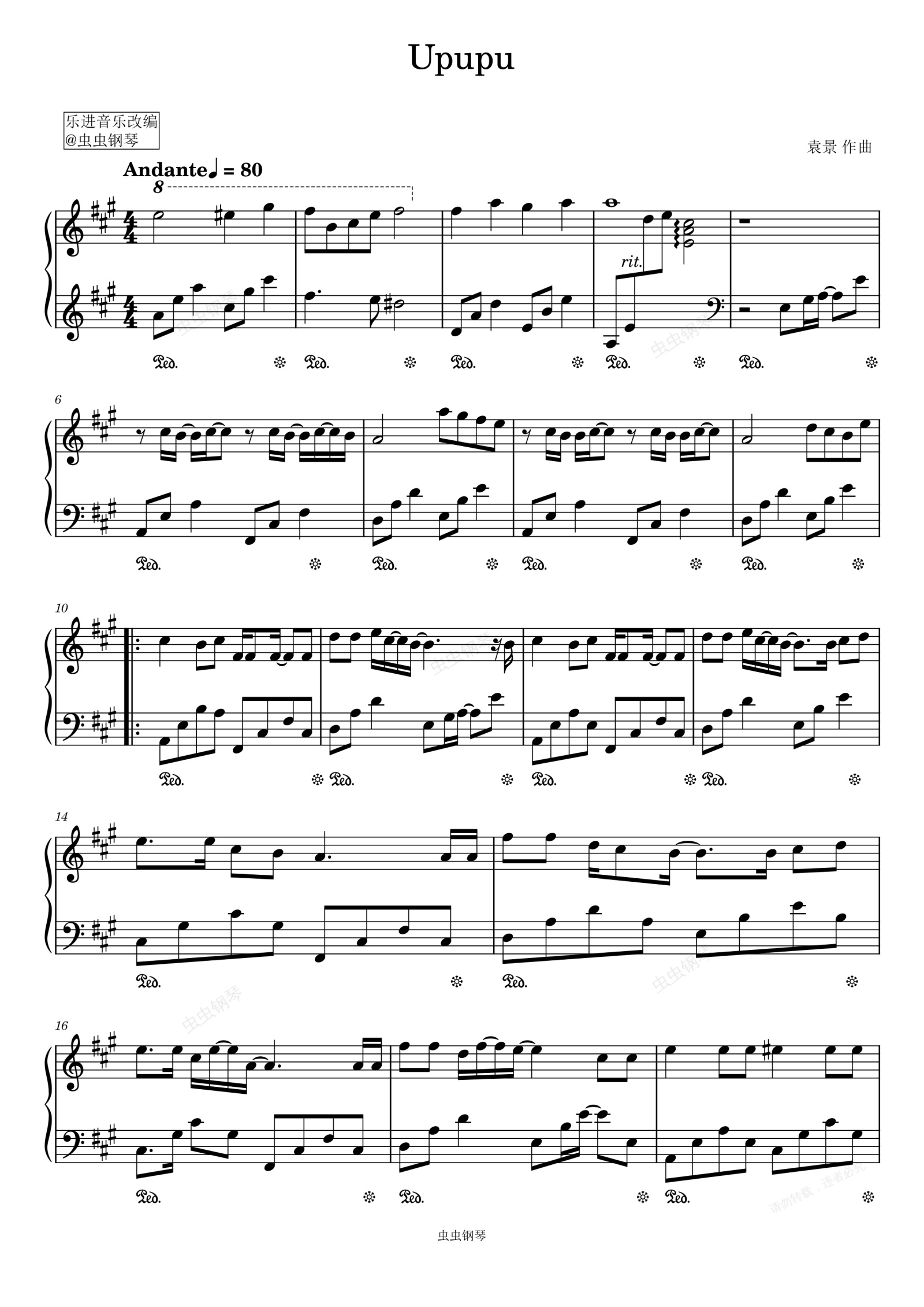钢琴谱:Upupu 演奏版