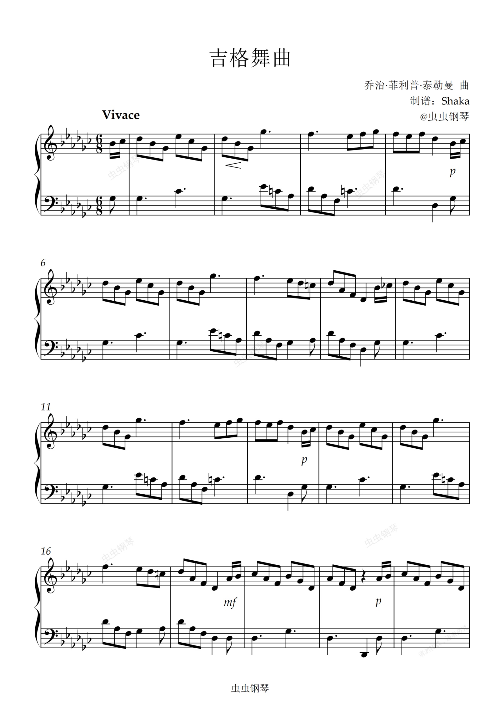 钢琴谱:吉格舞曲 降G调较难版 上海音乐学院2级考级曲目