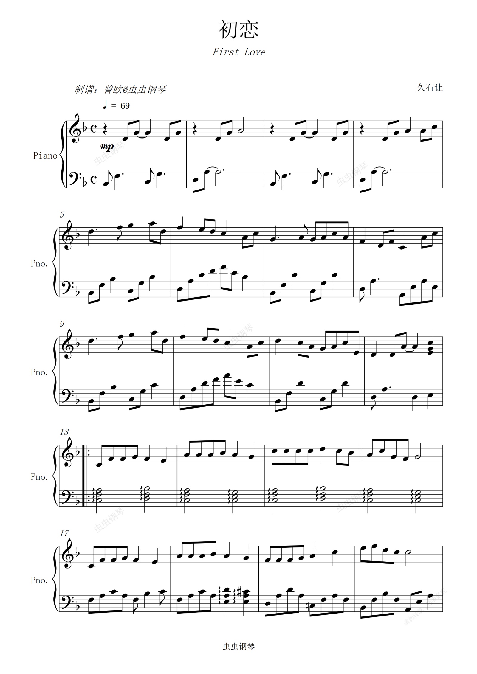 钢琴谱:初恋(はつ恋)- 久石让【你是黎明般的歌】