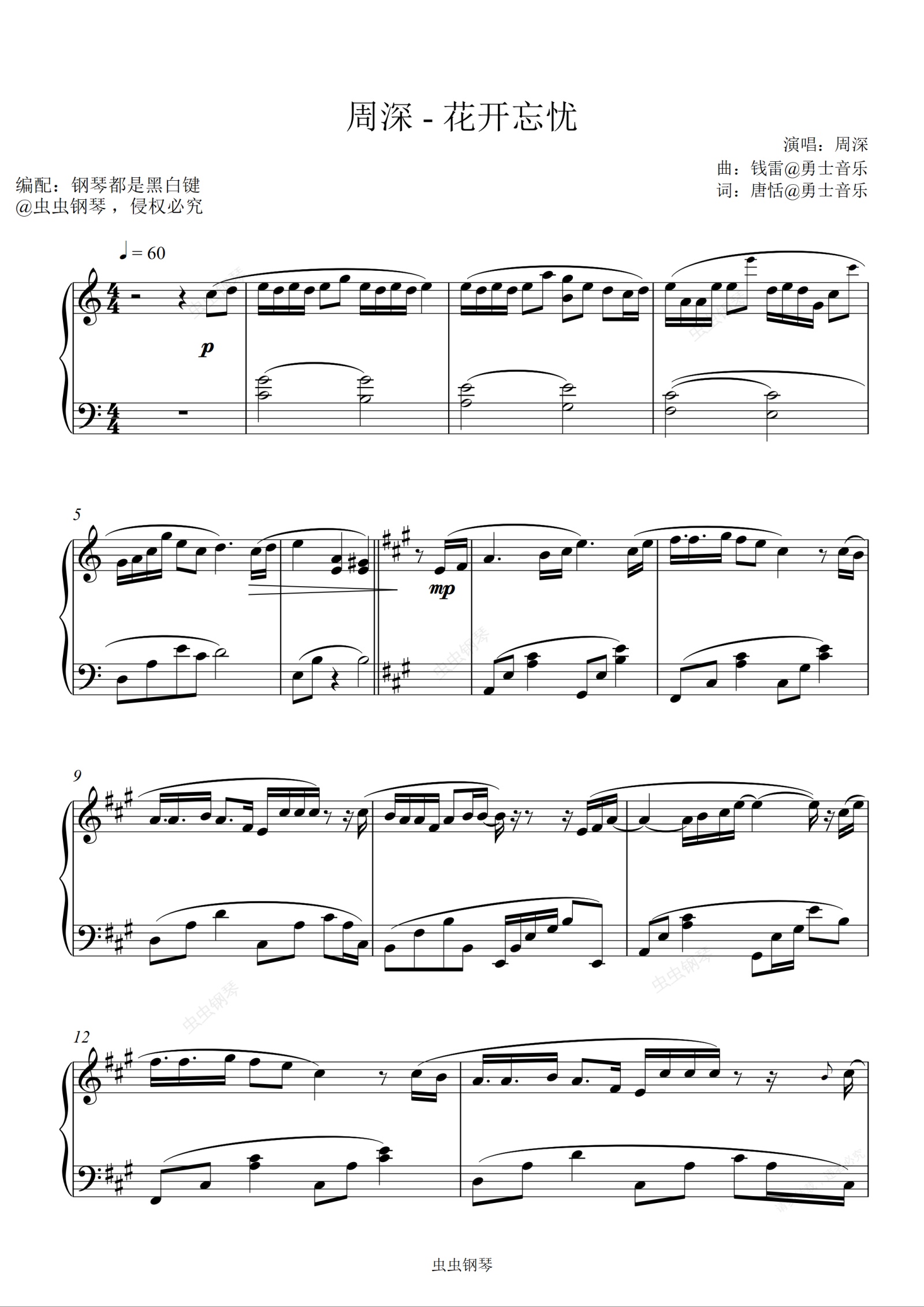 钢琴谱:花开忘忧 - 周深新歌 【超高还原精编钢琴独奏】