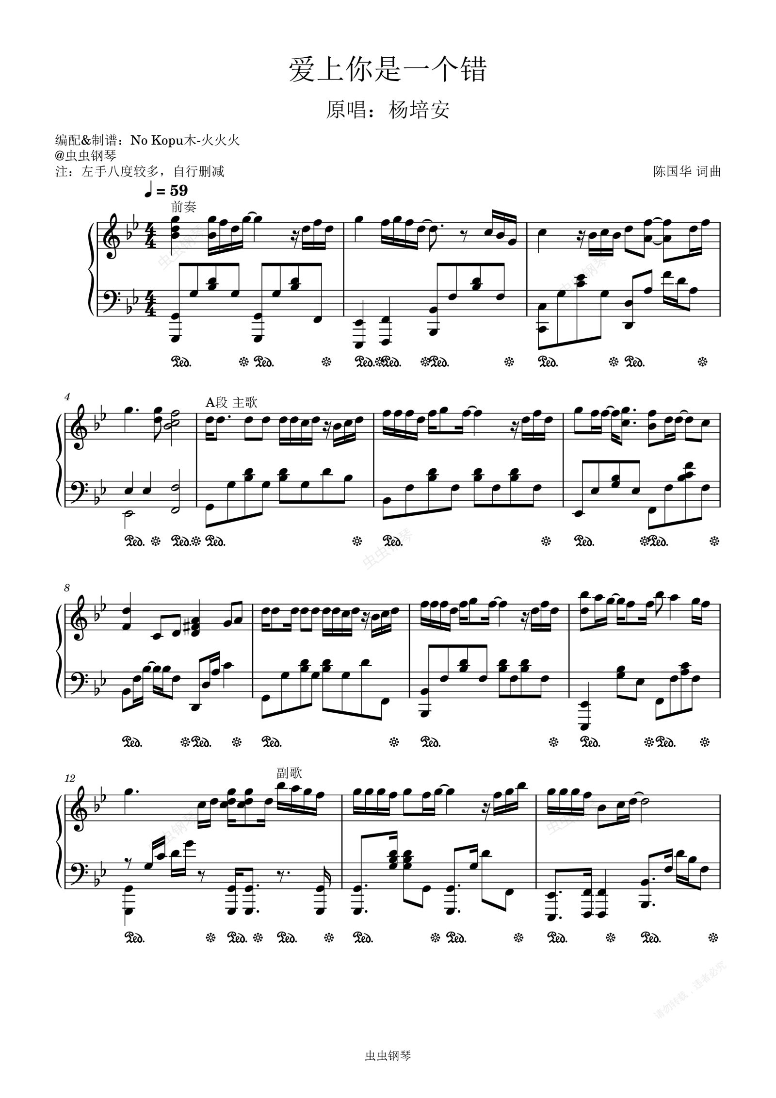 钢琴谱:bB原调 爱上你是一个错 贴合原版