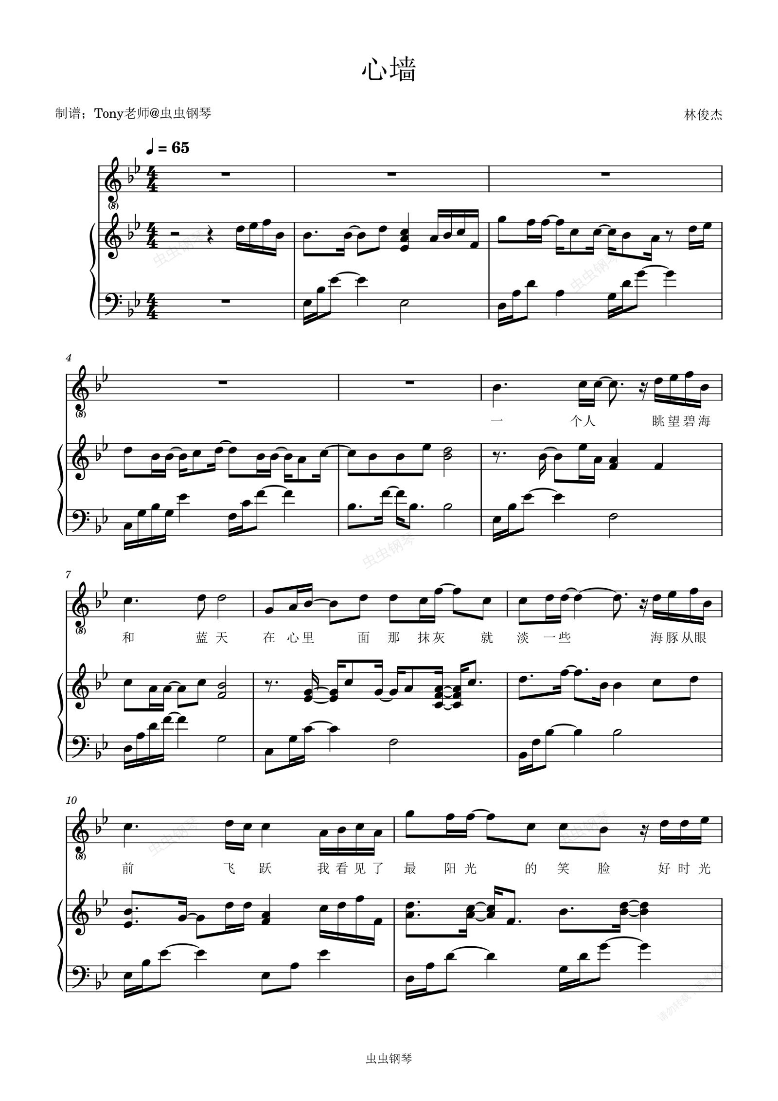 钢琴谱:心墙【完美伴奏附词】林俊杰