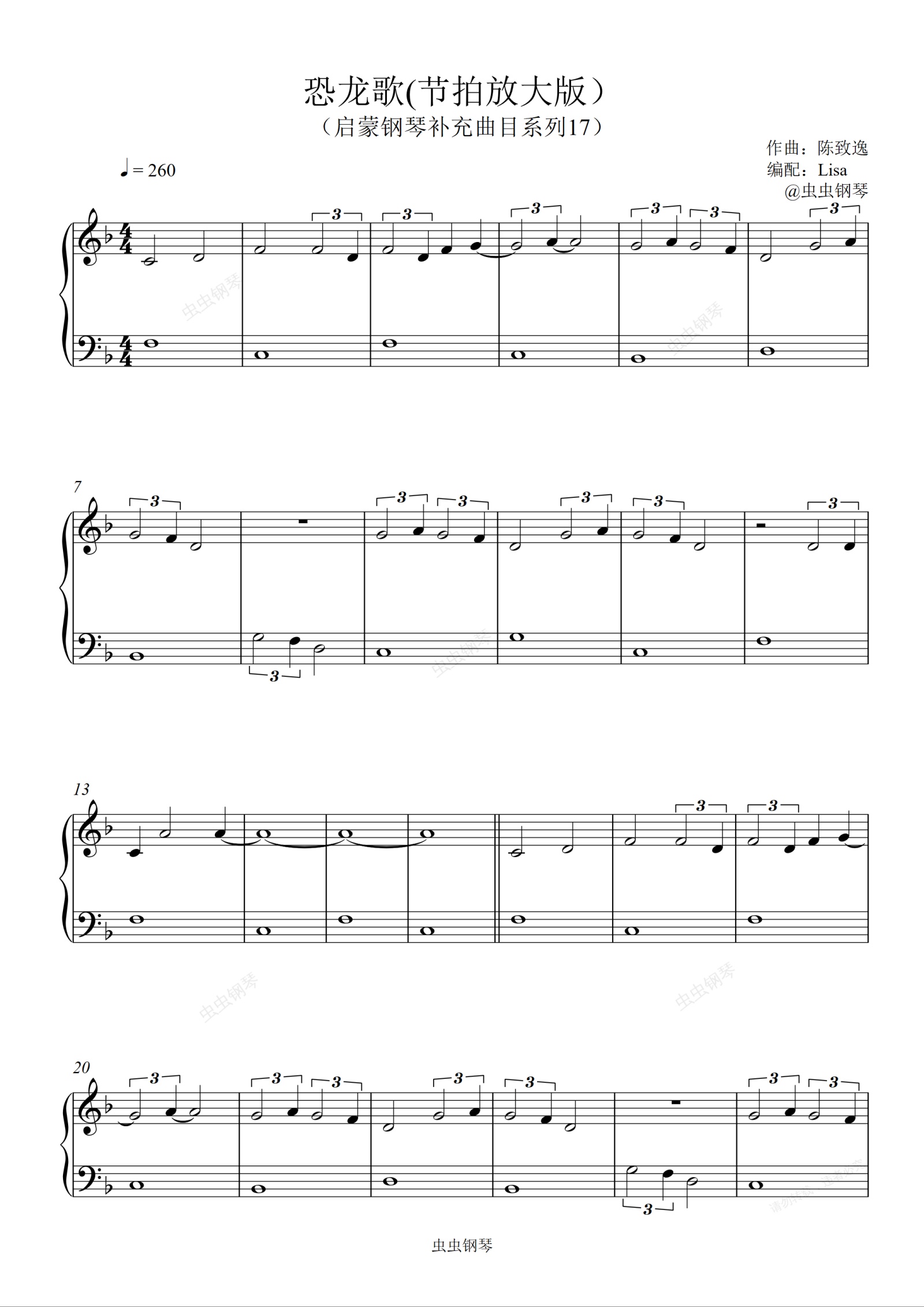 钢琴谱:恐龙歌(小汤3水平,启蒙钢琴补充曲目)