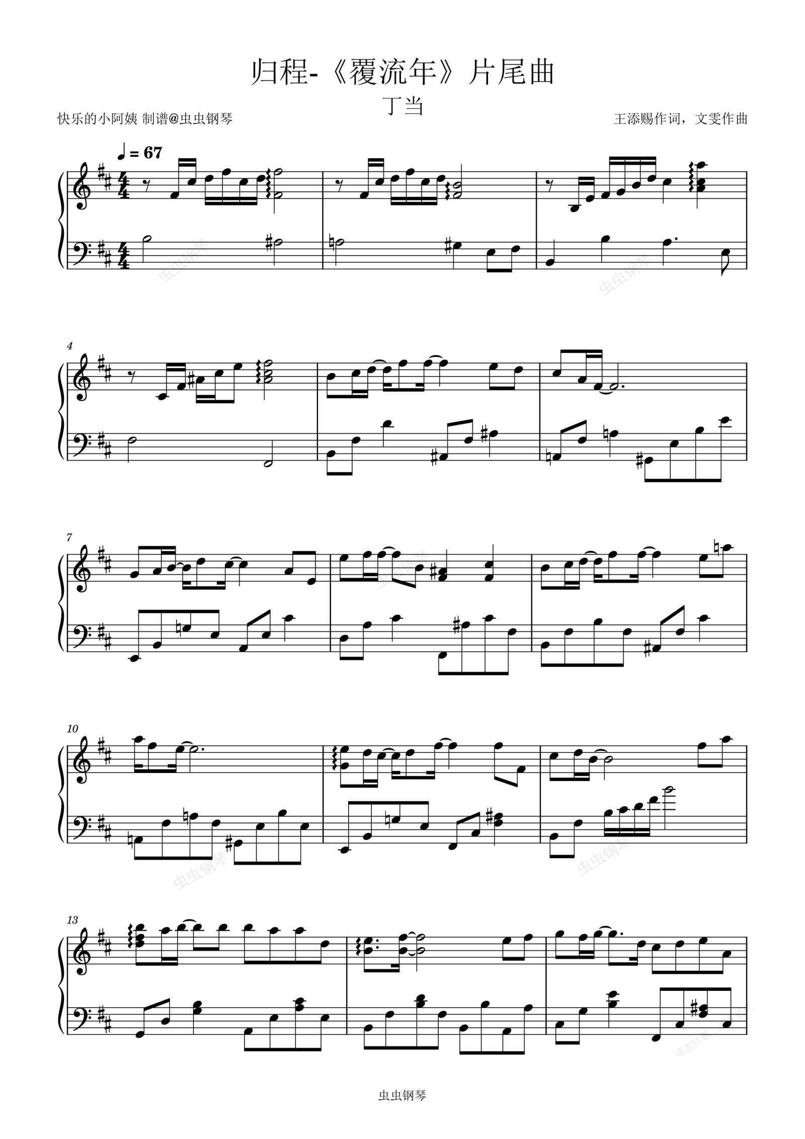 钢琴谱:归程-《覆流年》片尾曲-D调