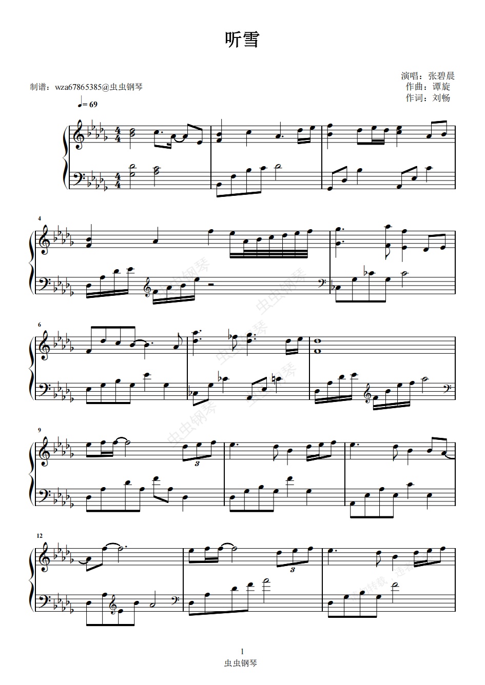 钢琴谱:听雪
