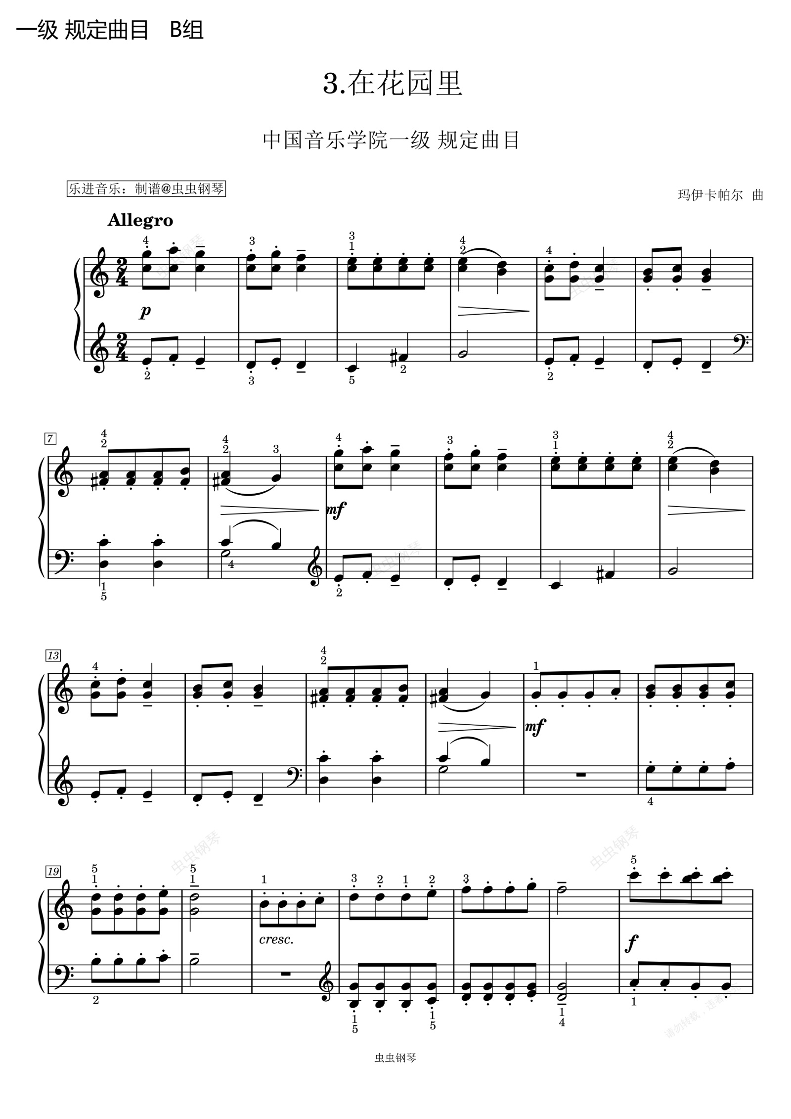 钢琴谱:【教材版】《在花园里》中国音乐学院 一级 规定曲目