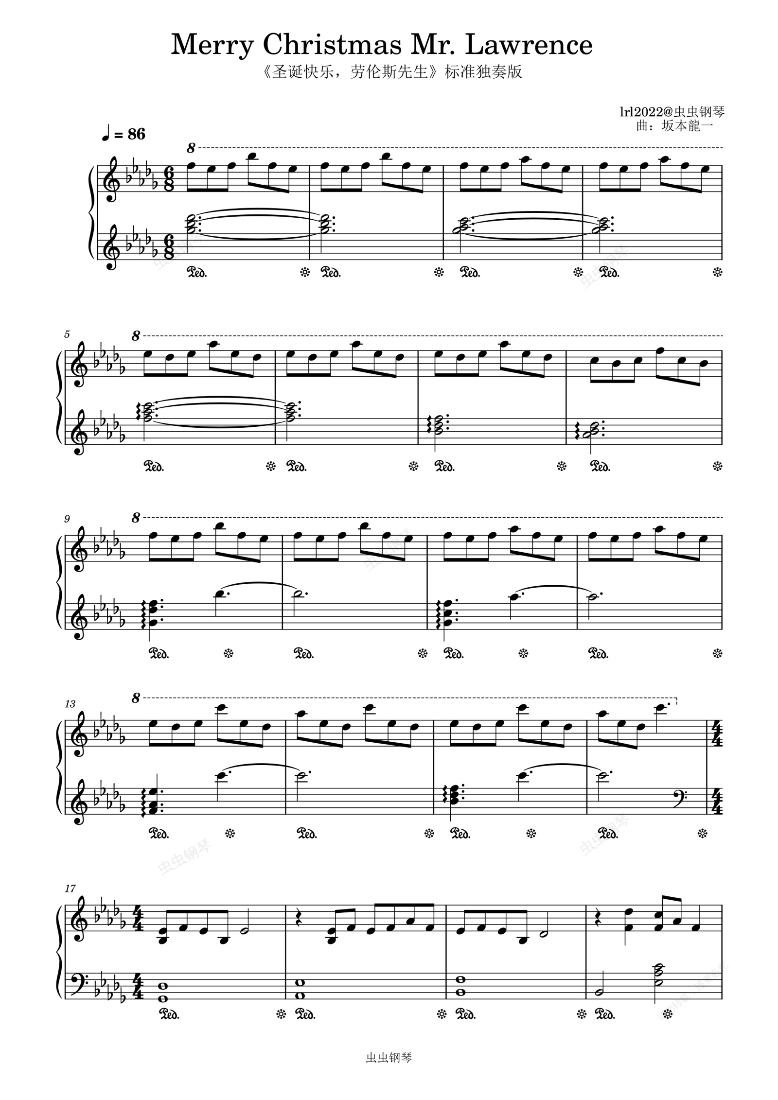 钢琴谱:Merry Christmas Mr. Lawrence-降D调-《圣诞快乐,劳伦斯先生》标准独奏版-钢琴谱