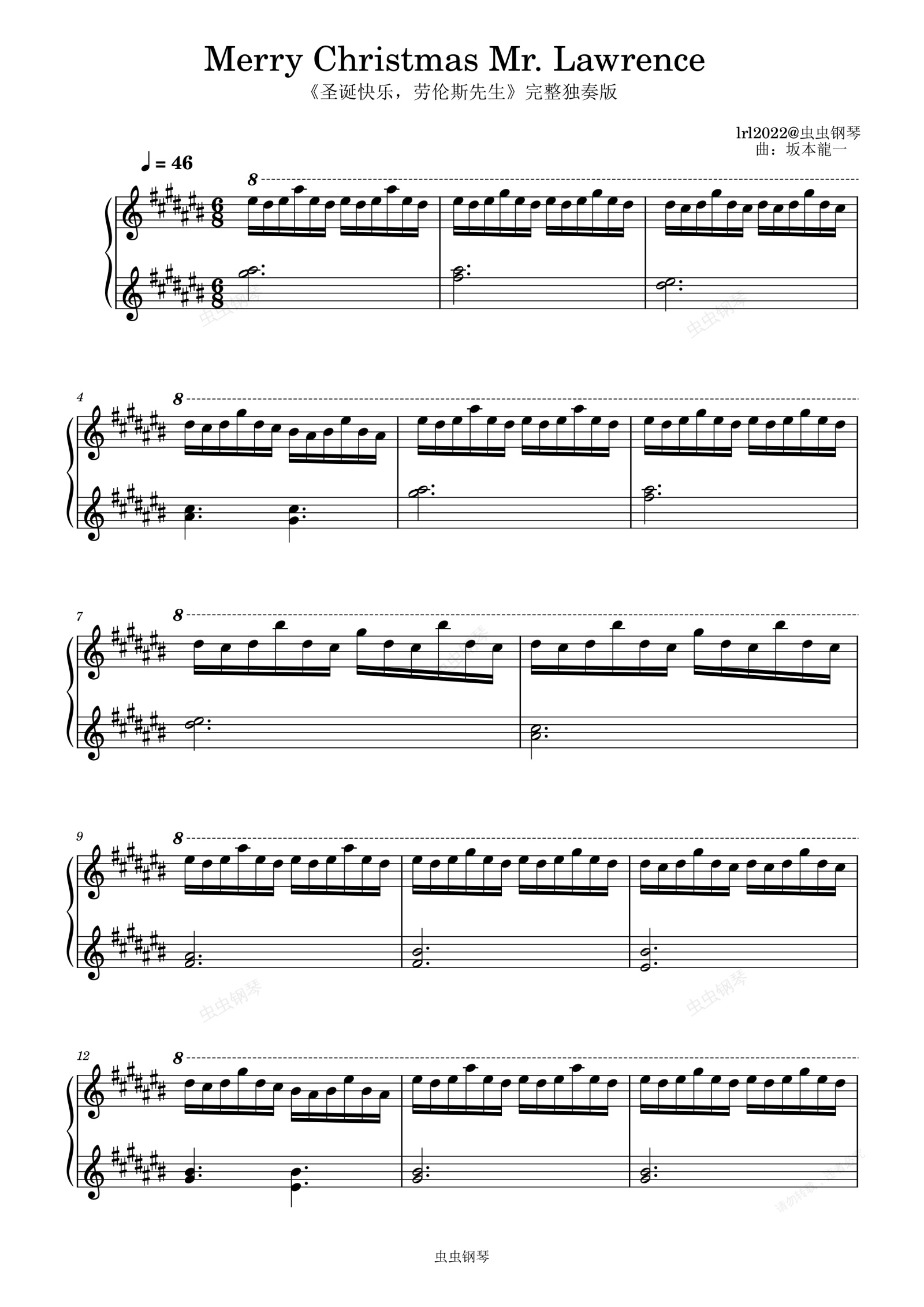 钢琴谱:Merry Christmas Mr. Lawrence-升C调-《圣诞快乐,劳伦斯先生》完整独奏版-钢琴谱