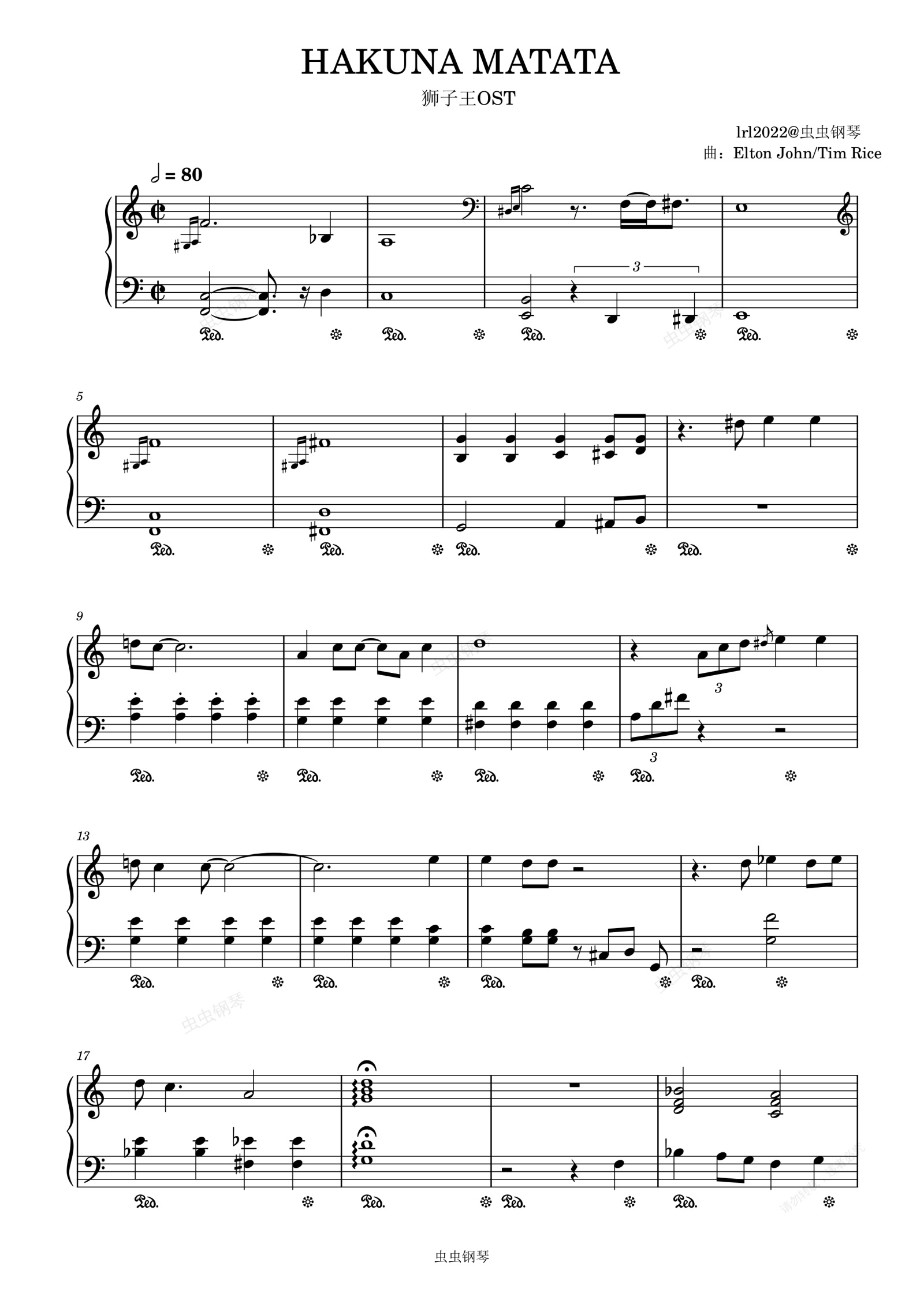 钢琴谱:Hakuna Matata-狮子王OST-独奏版-钢琴谱