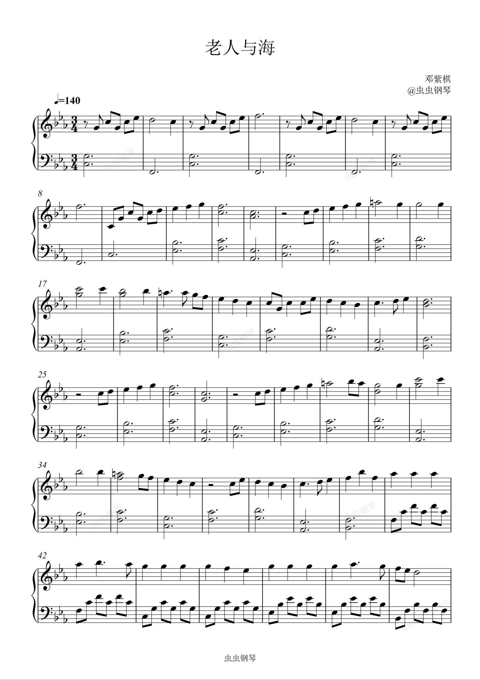 钢琴谱:老人与海-邓紫棋-C小调独奏谱