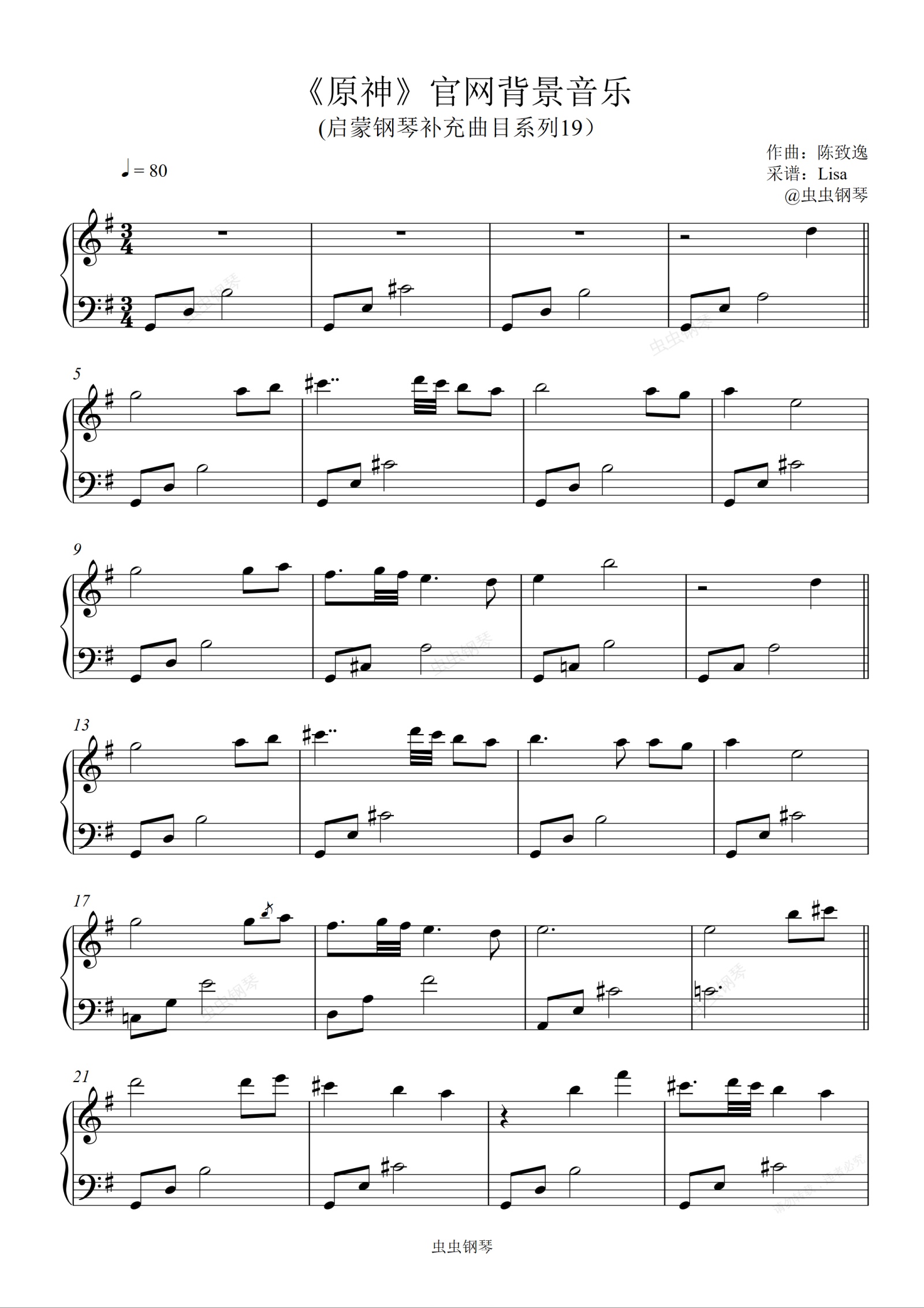 钢琴谱:《原神》官网背景音乐(小汤3水平)