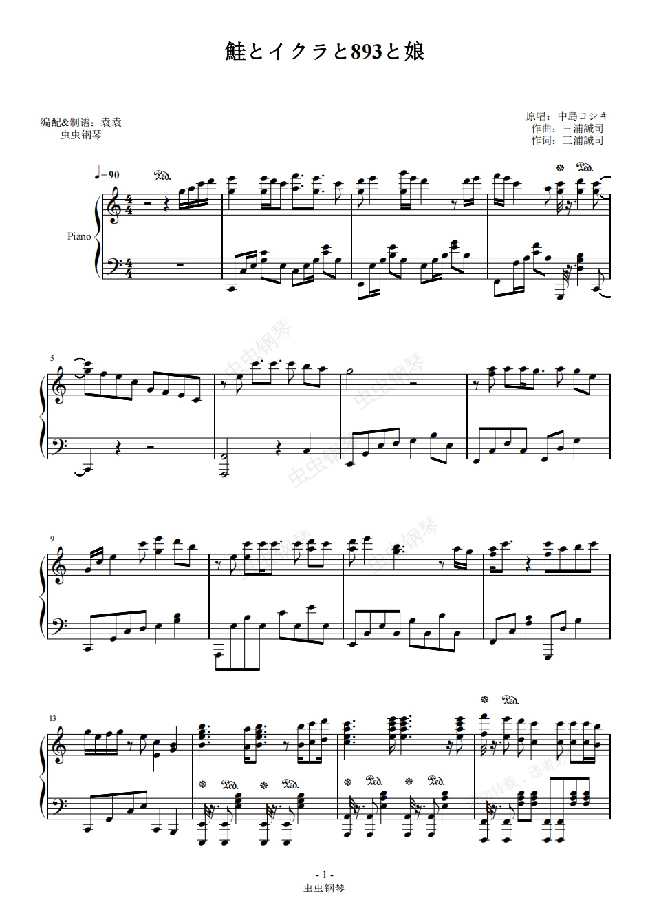 钢琴谱:超能力女儿ED 鮭とイクラと893と娘 原调 完美演奏版