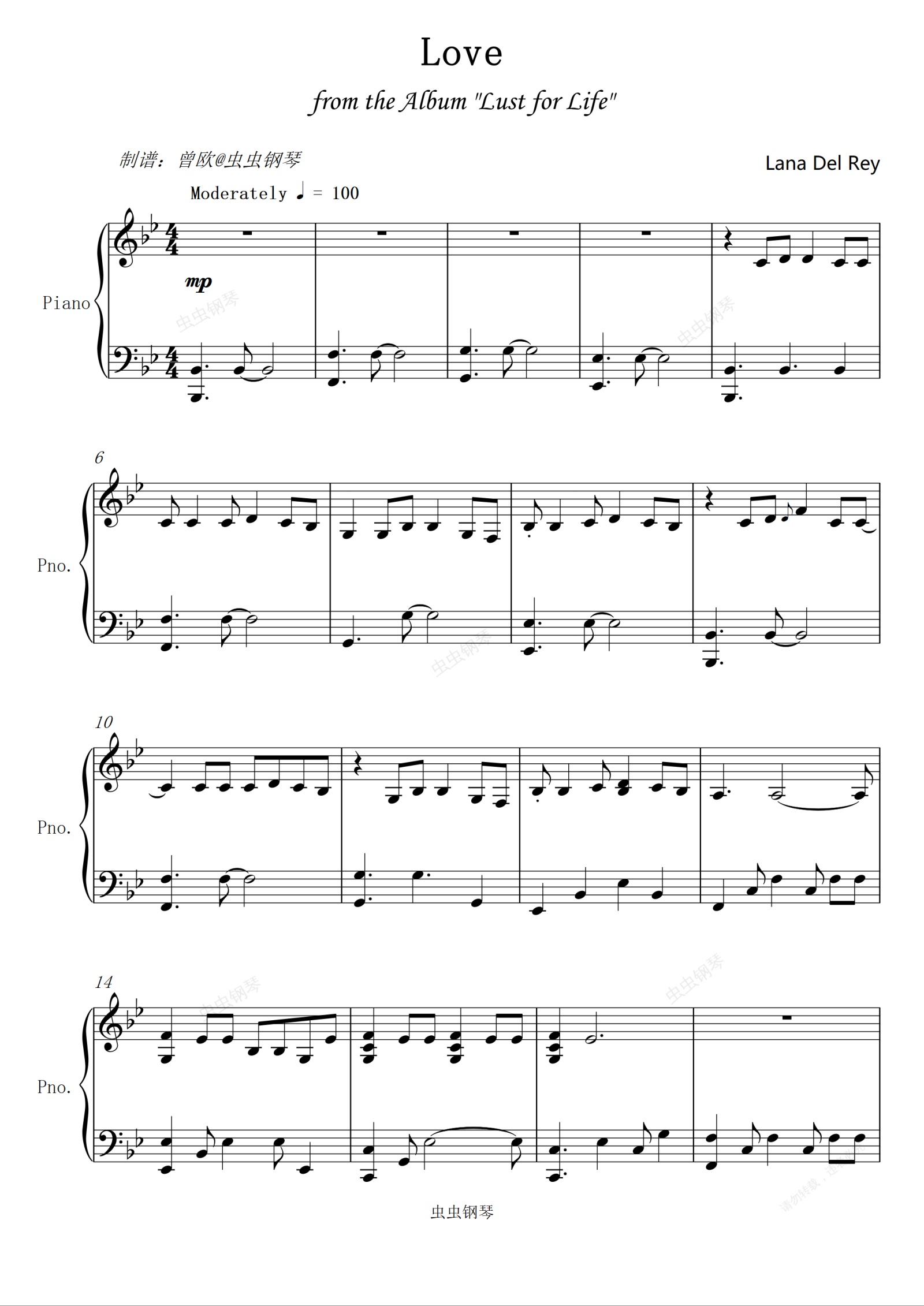 钢琴谱:Love - Lana Del Rey (免费易弹)