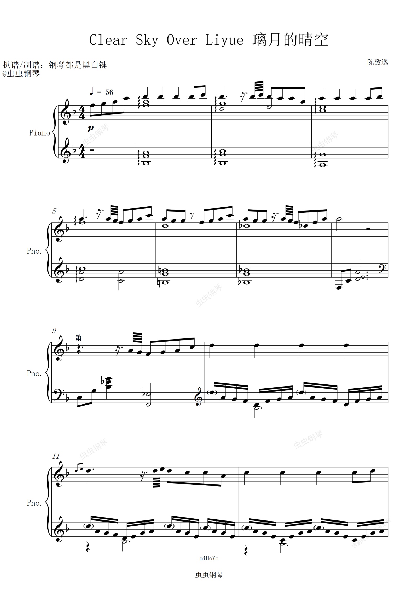 钢琴谱:原神 / Clear Sky Over Liyue 璃月的晴空