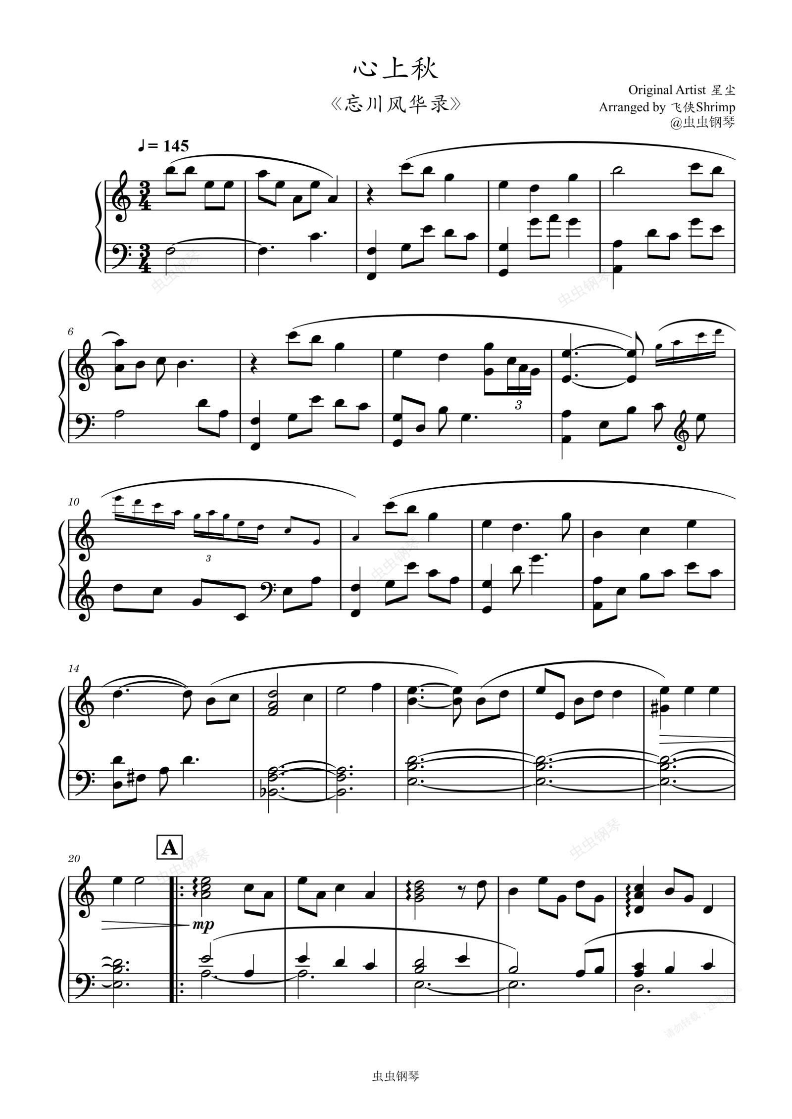 钢琴谱:心上秋《忘川风华录》(星尘)