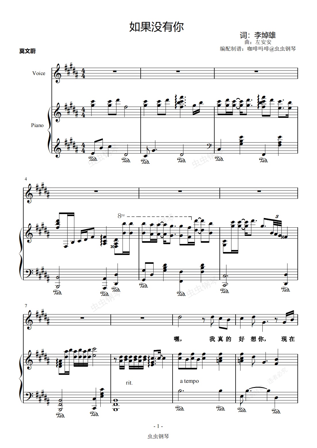 钢琴谱:如果没有你 -莫文蔚 钢琴伴奏谱