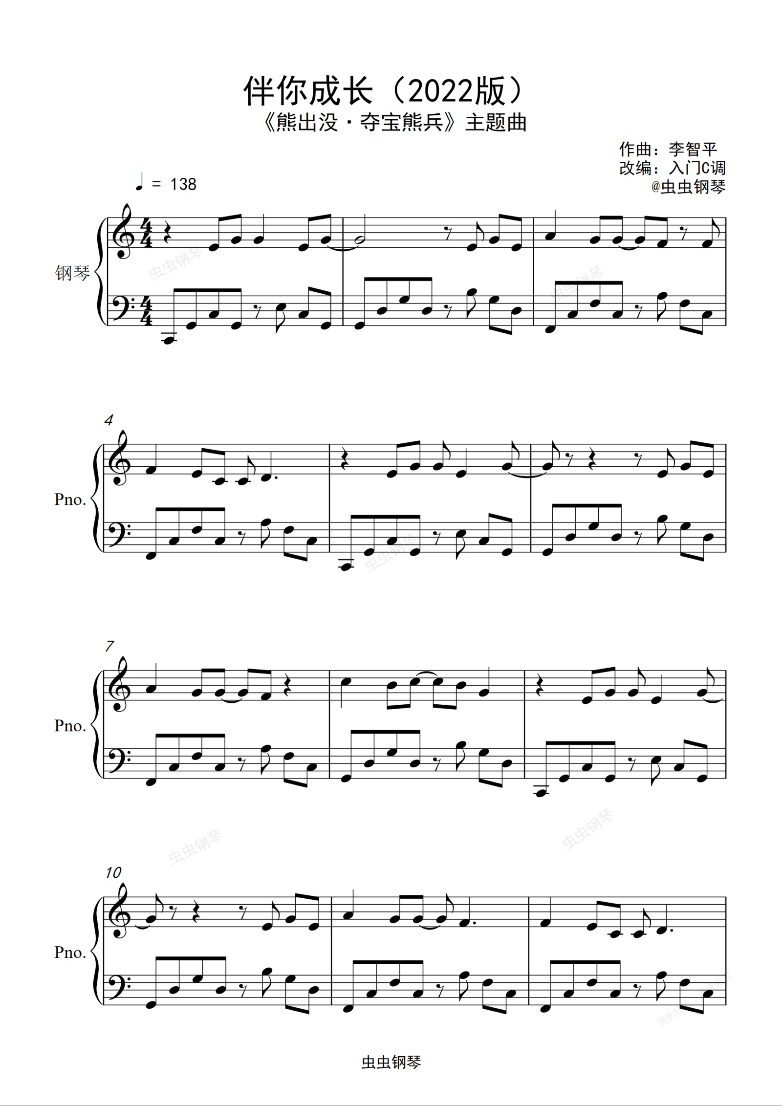 钢琴谱:2022《伴你成长》毕业季大合唱入门C调版