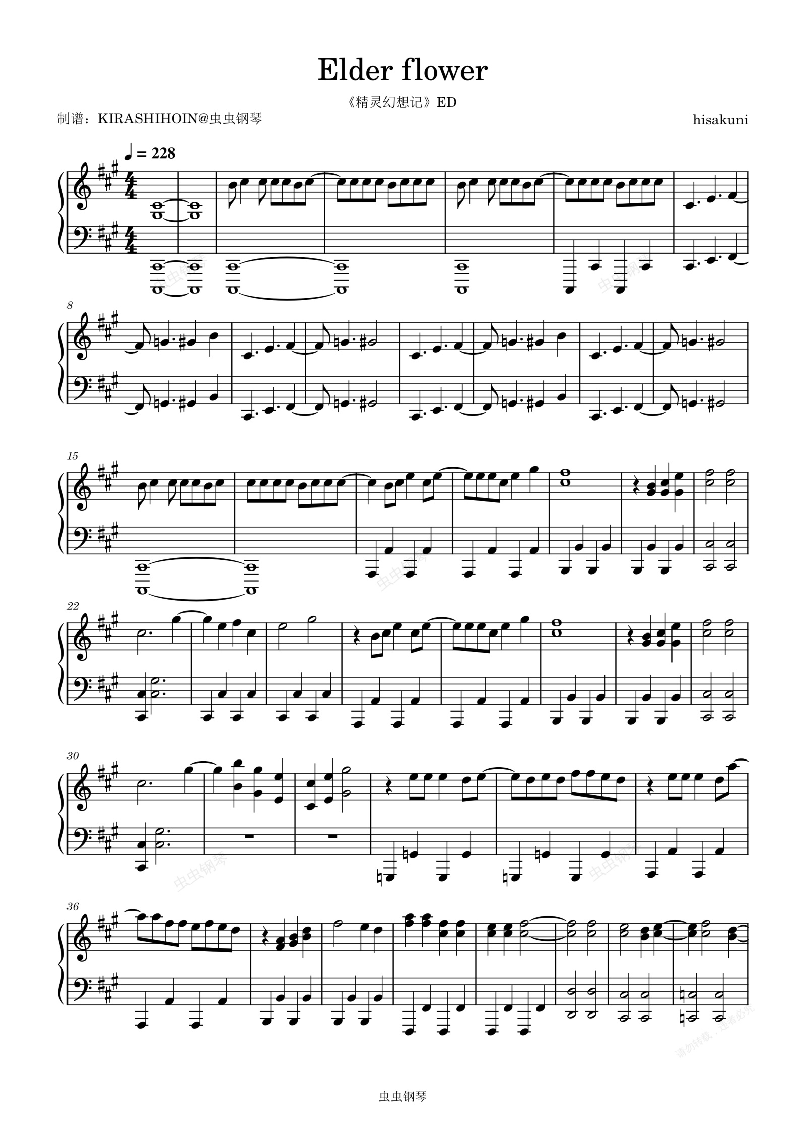 钢琴谱:Elder flower(《精灵幻想记》ED/片尾曲)- 大西亜玖璃