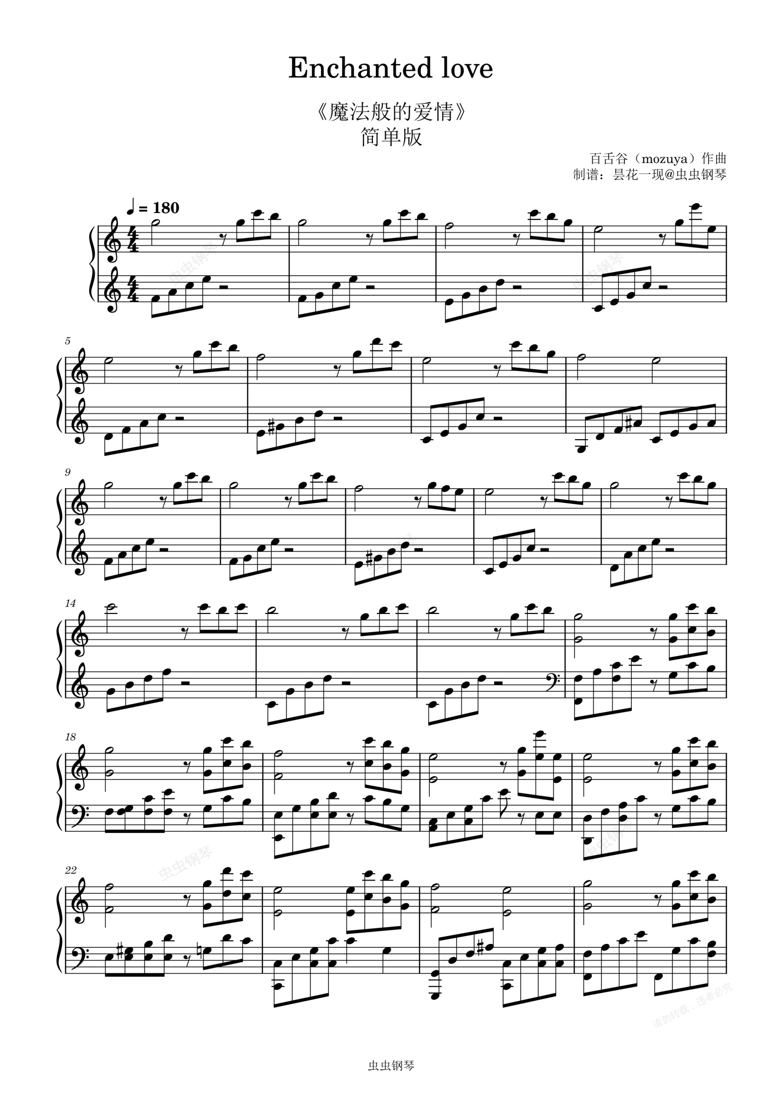 钢琴谱:Enchanted love C大调 《魔法般的爱情》 简单版